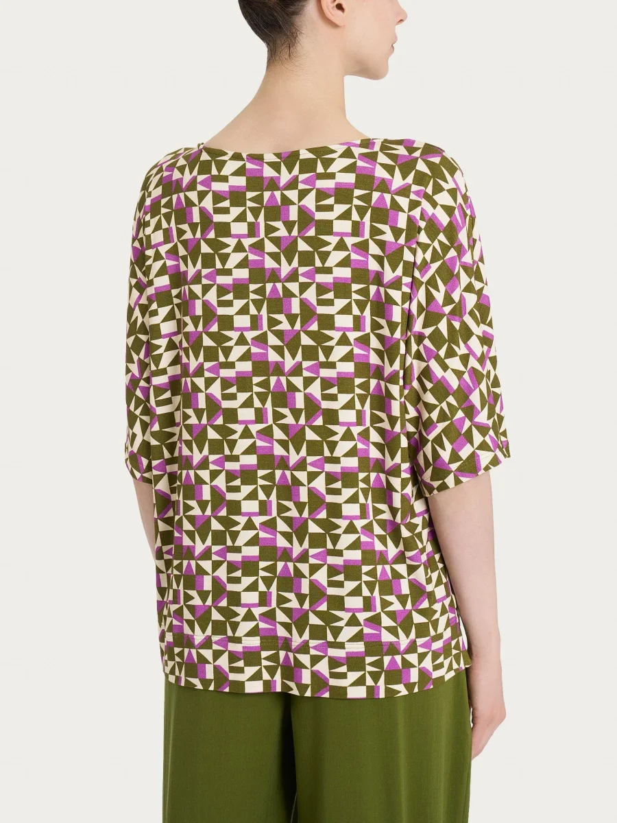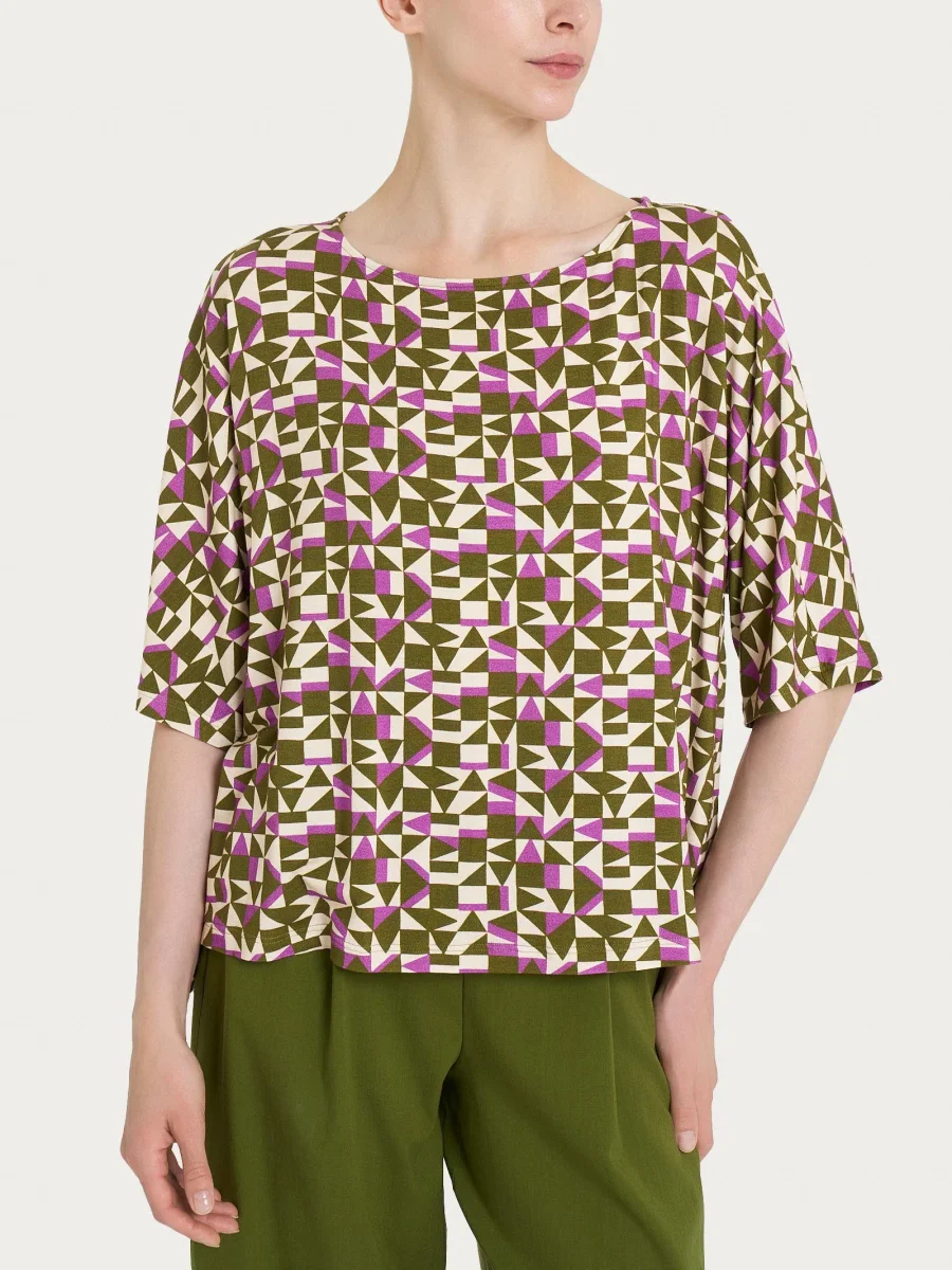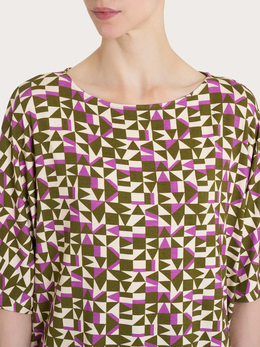 Maglia girocollo con geometric pattern in Viscosa Summer – Fant. Cattleya Orchid