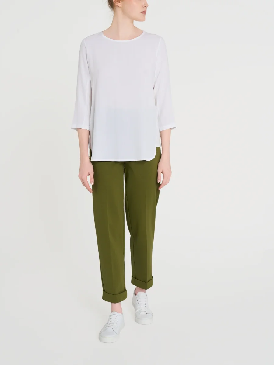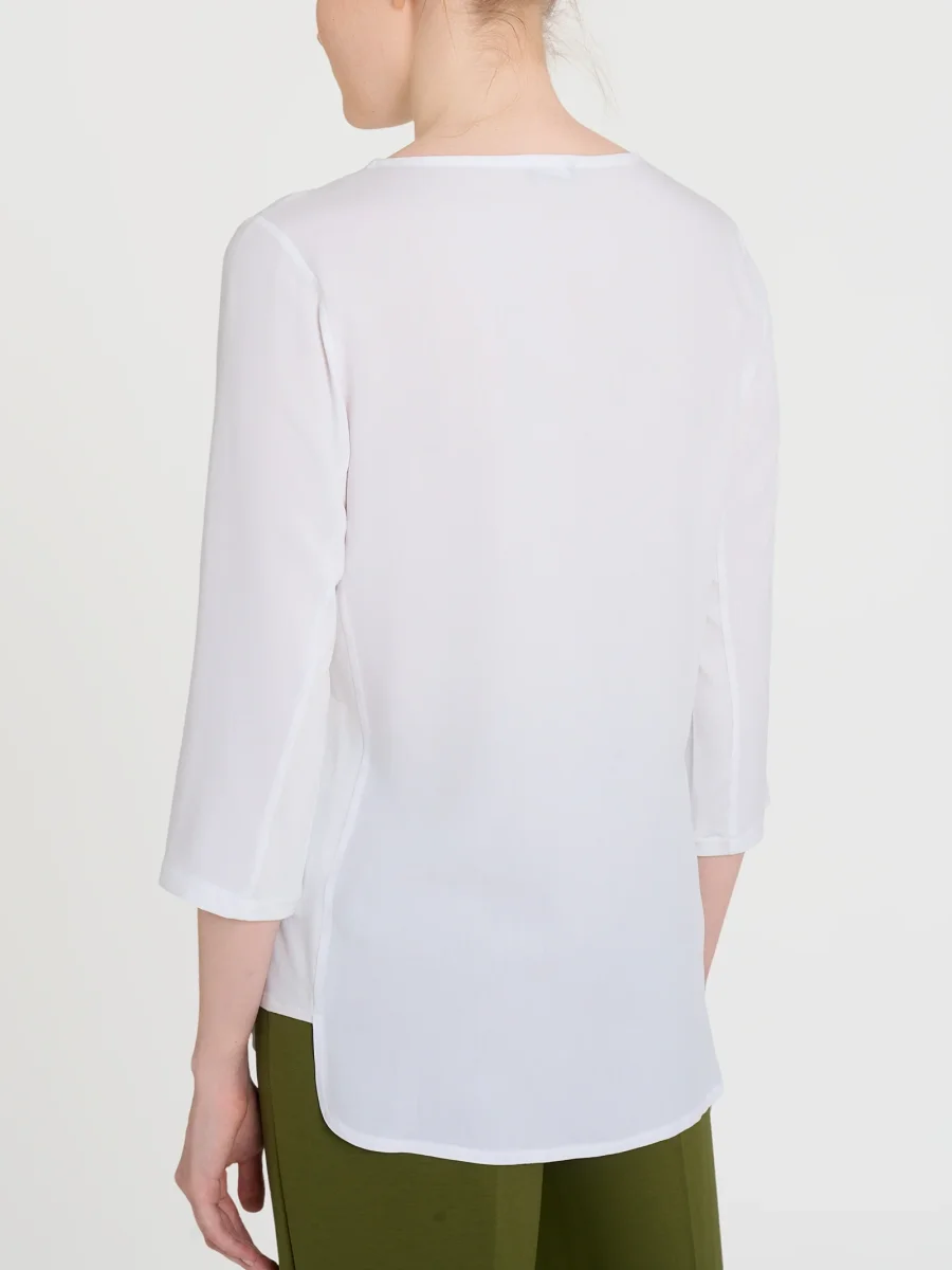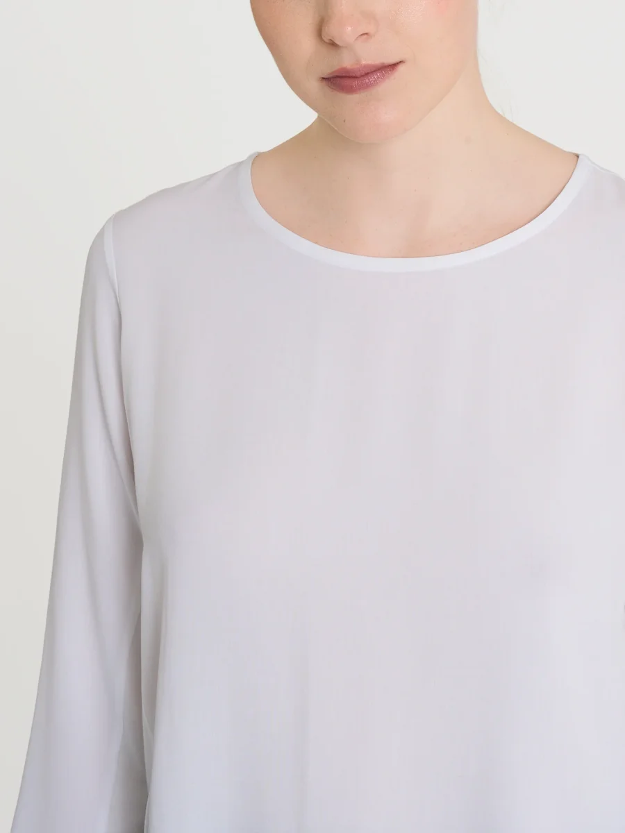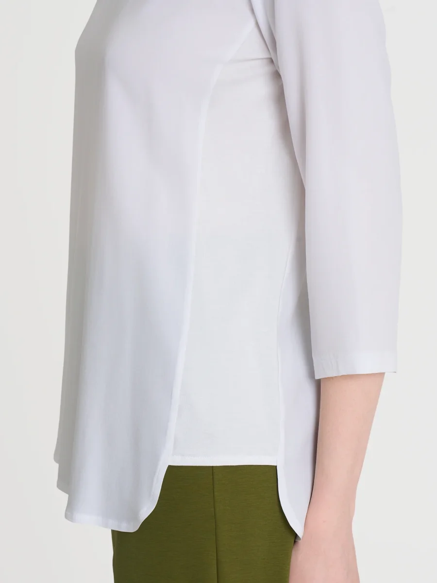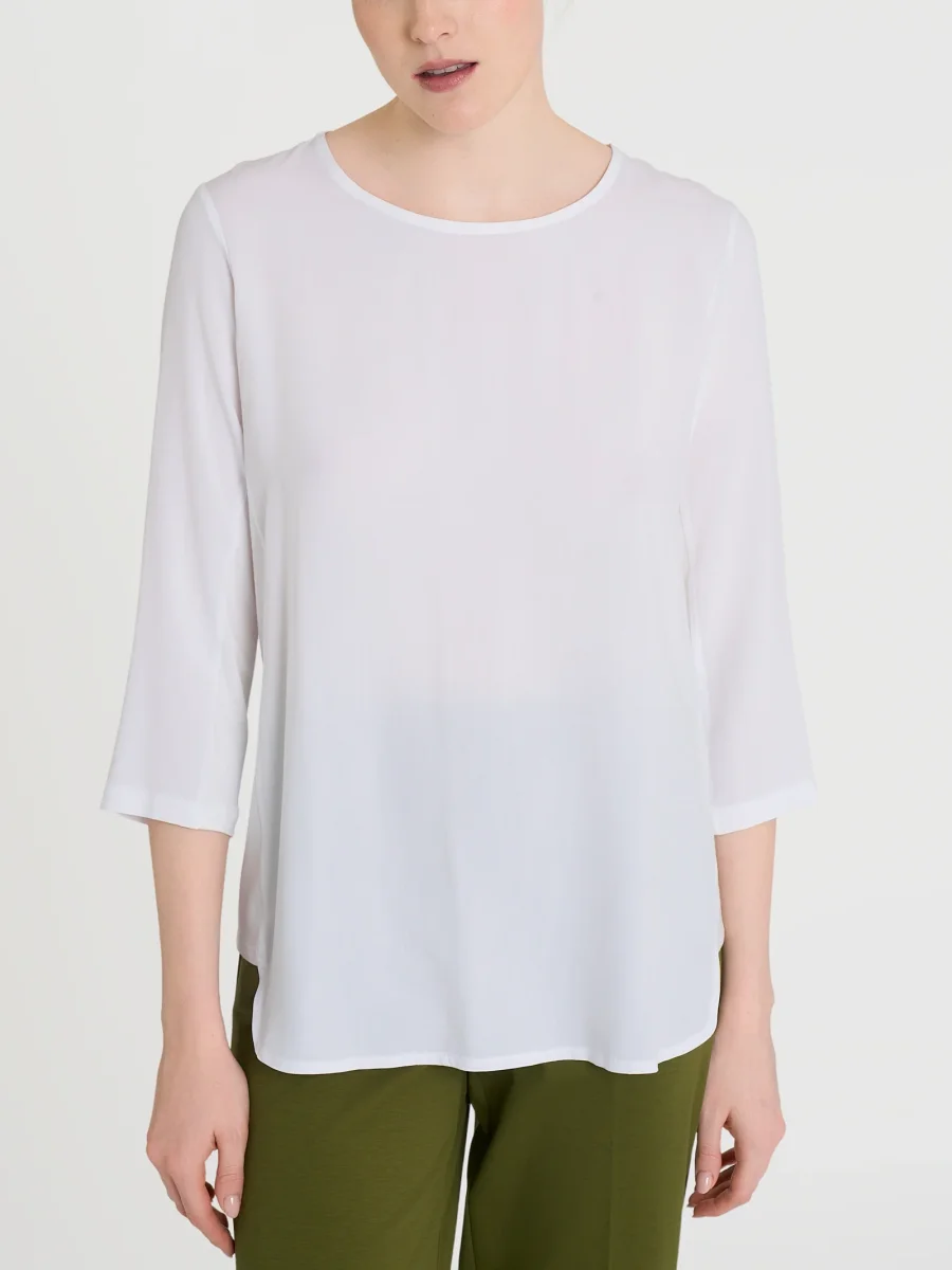 Maglia girocollo con manica 3/4 con inserto laterale in jersey di viscosa.