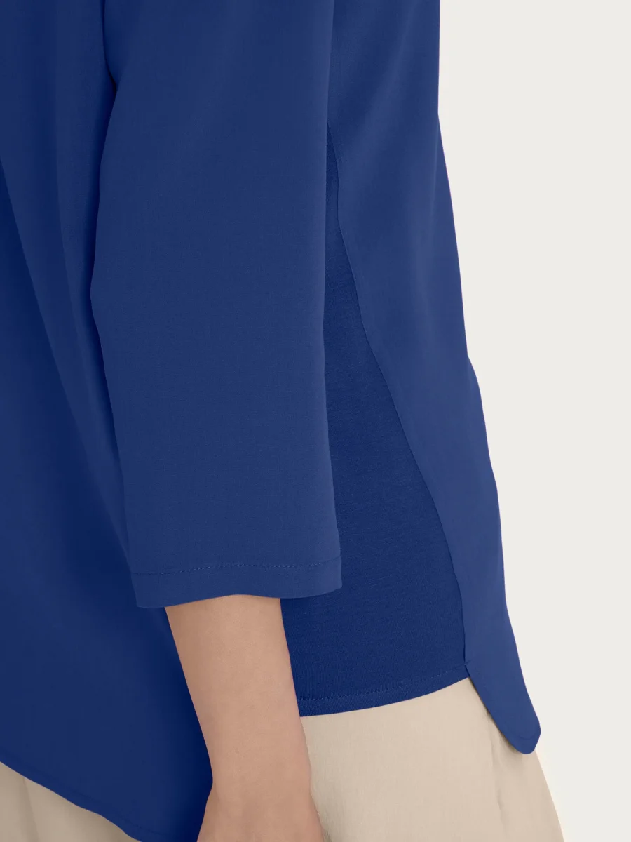 Maglia girocollo con manica 3/4 con inserto laterale in jersey di viscosa.