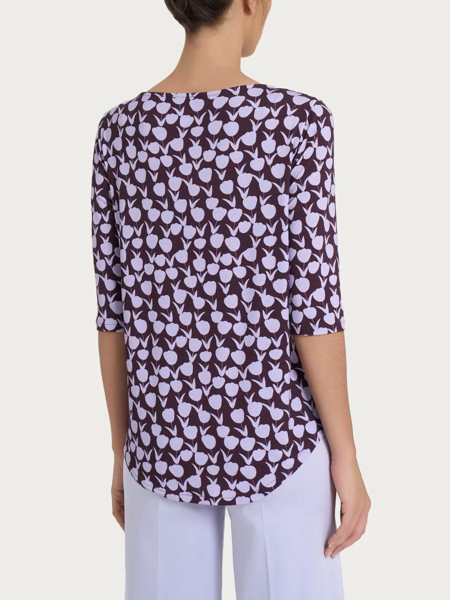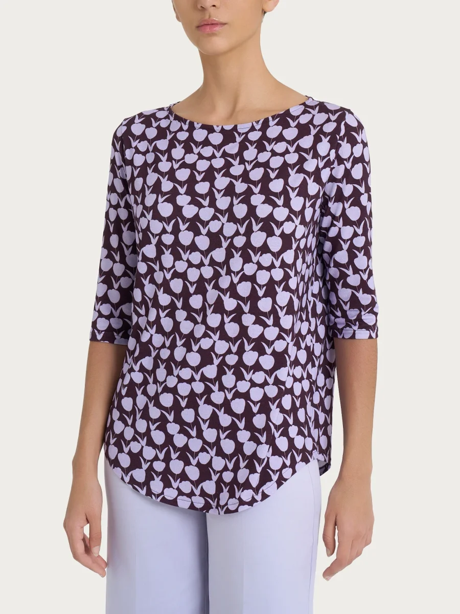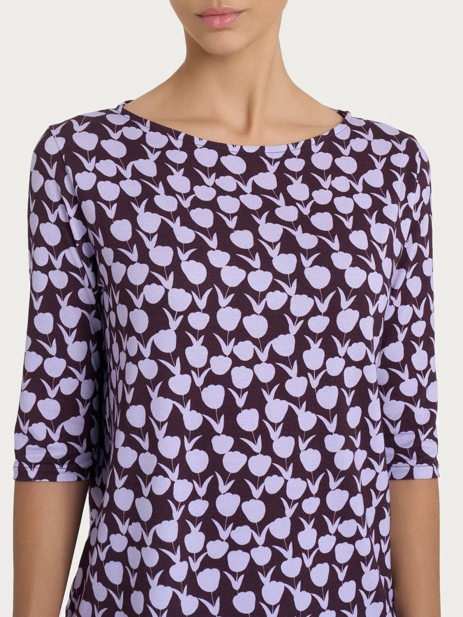 Maglietta a barchetta con tulips pattern in jersey di viscosa Crêpe – Fant. Thistle