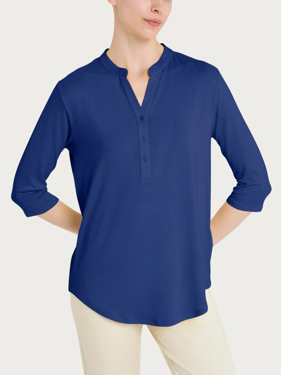 Realizzata in fresco e traspirante jersey elasticizzato di viscosa, una fibra di origine cellulosica che unisce le migliori qualità della seta e del cotone. Morbida e delicata sulla pelle come la seta ma resistente e traspirante come il cotone oltre che di semplice manutenzione e comodamente lavabile in lavatrice.