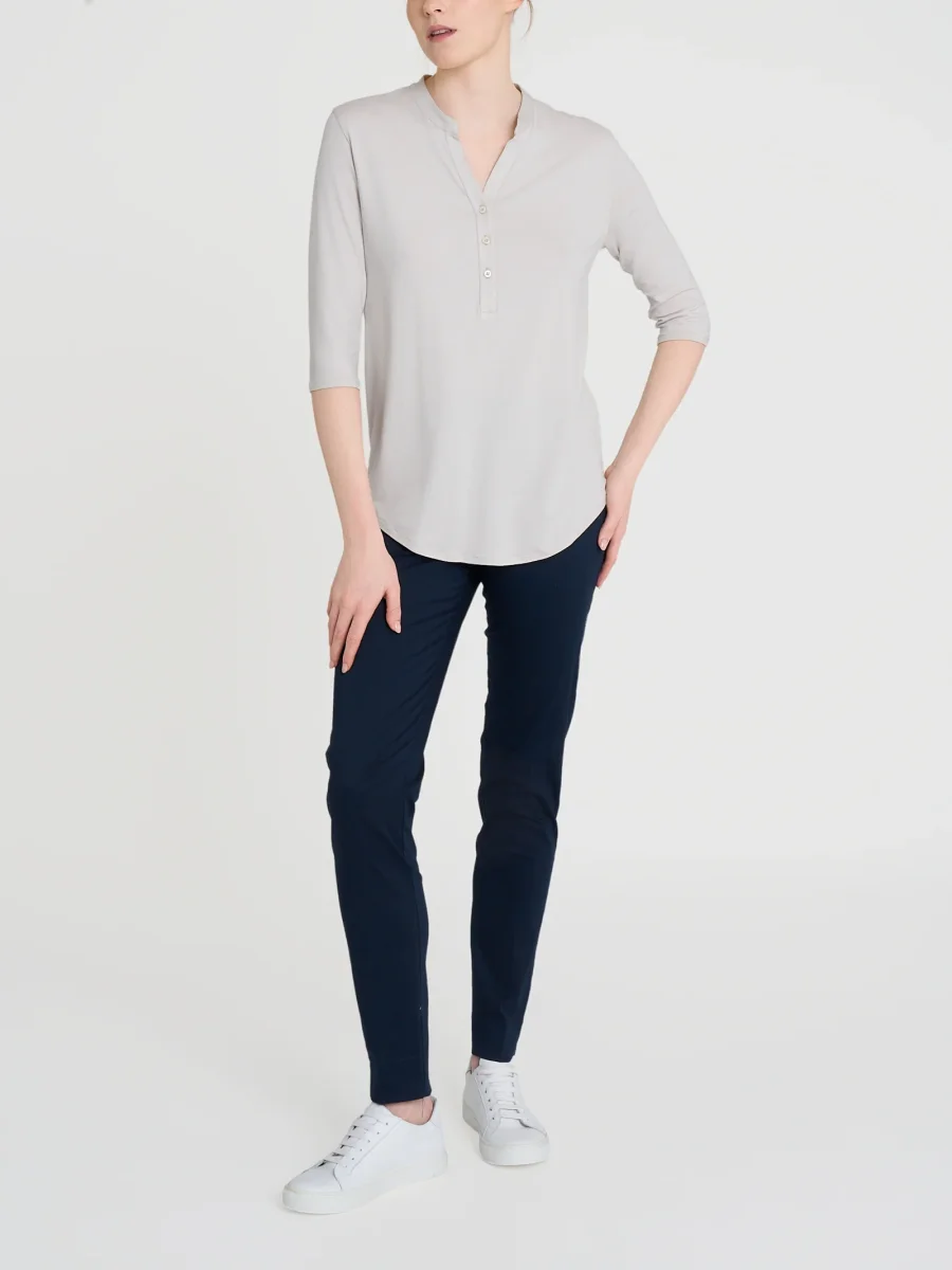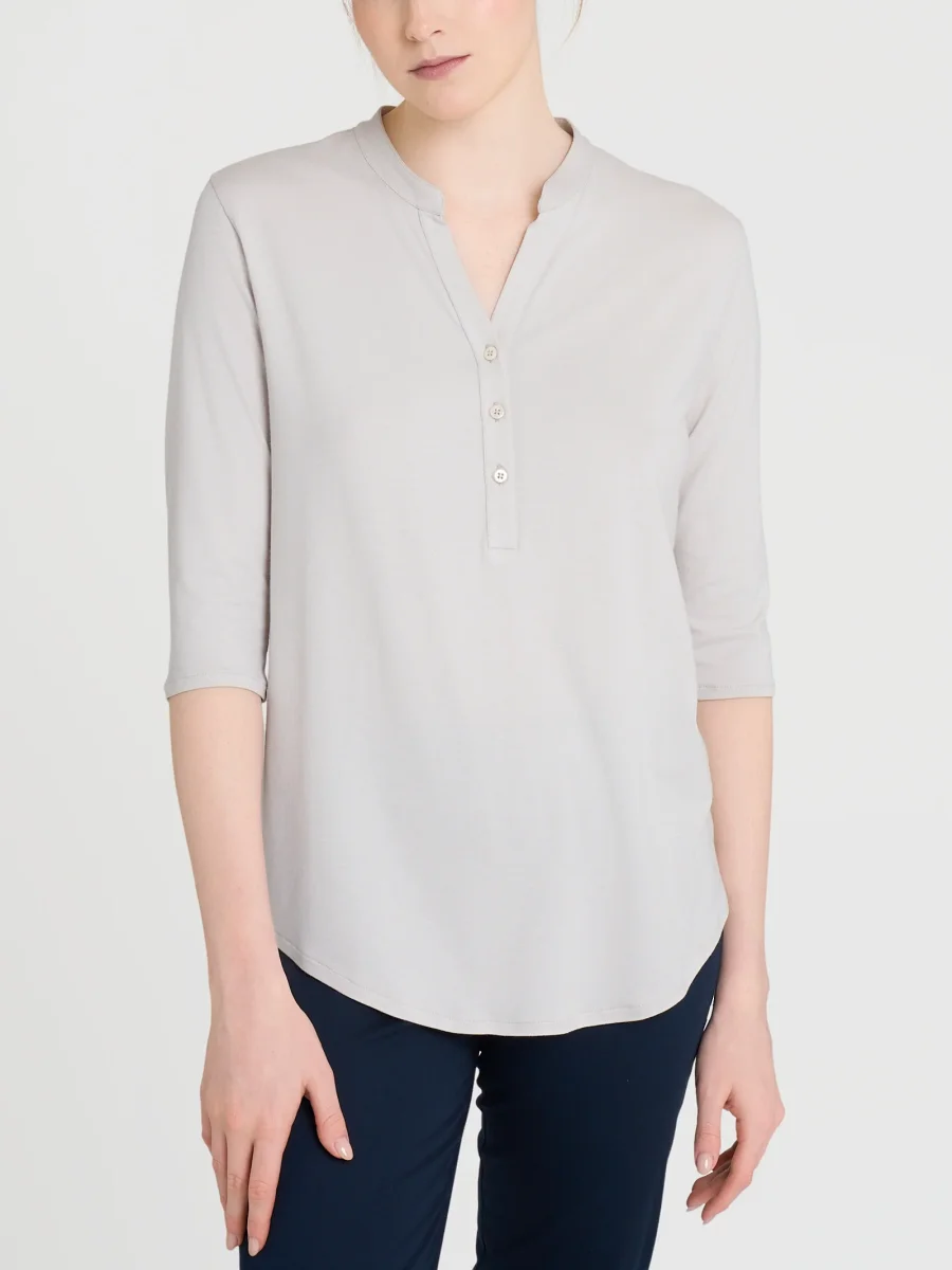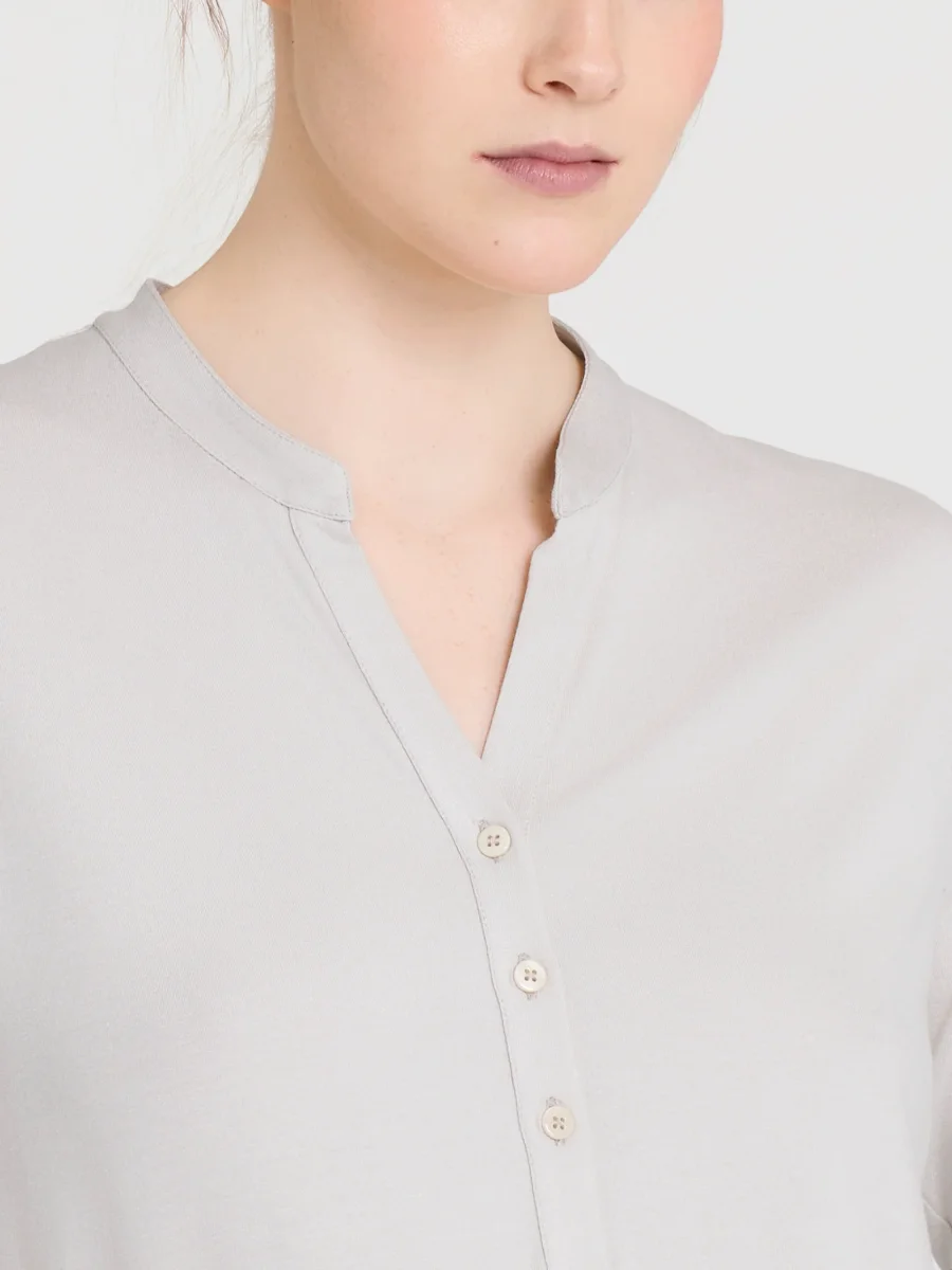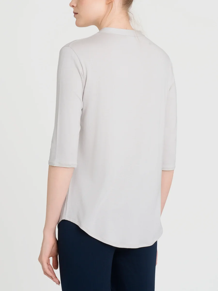 Realizzata in fresco e traspirante jersey elasticizzato di viscosa, una fibra di origine cellulosica che unisce le migliori qualità della seta e del cotone. Morbida e delicata sulla pelle come la seta ma resistente e traspirante come il cotone oltre che di semplice manutenzione e comodamente lavabile in lavatrice.