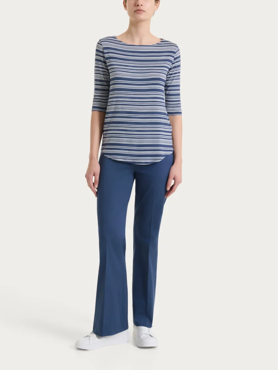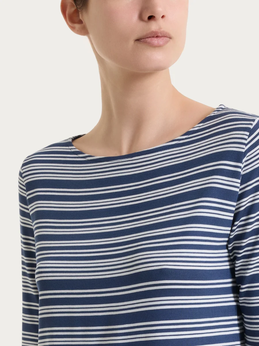 Maglietta a righe alternate con scollo a barchetta in Viscosa Summer – Fant. Oceana