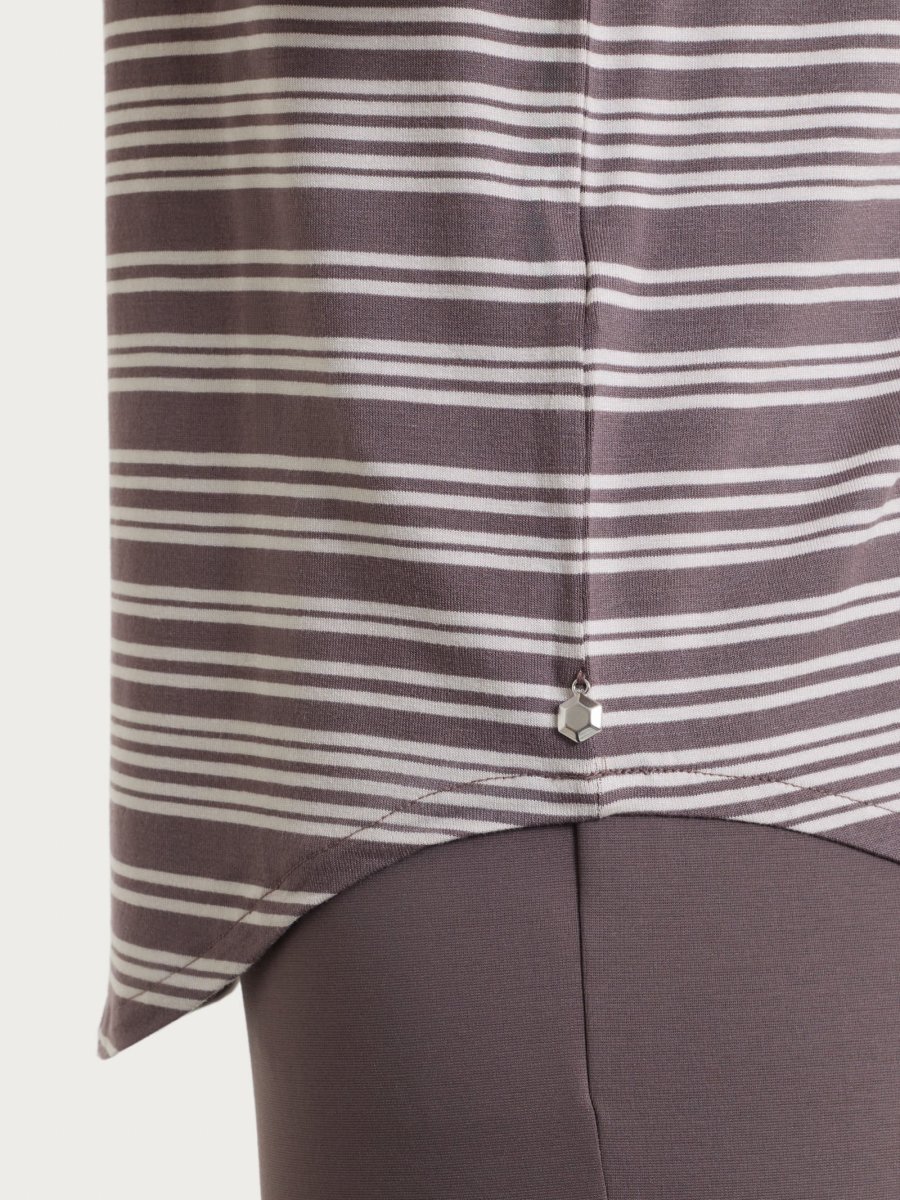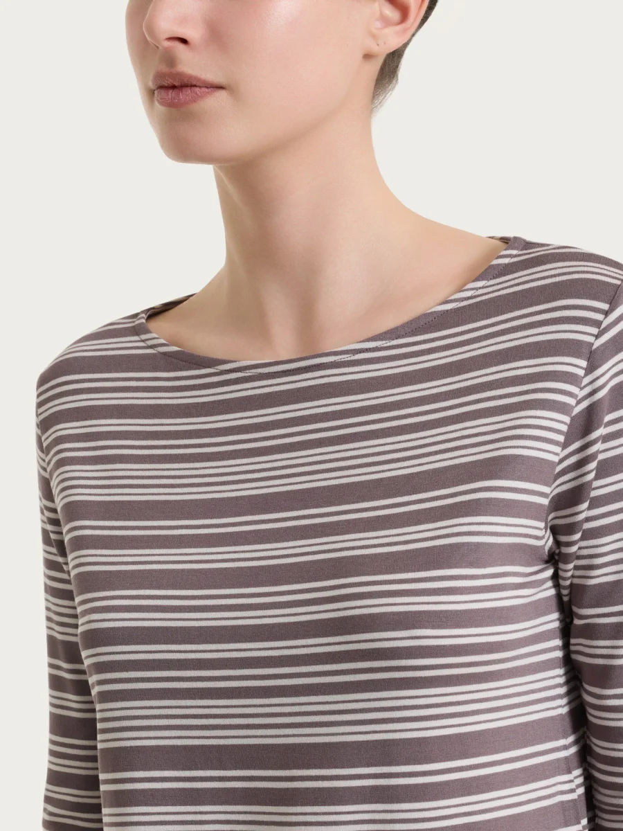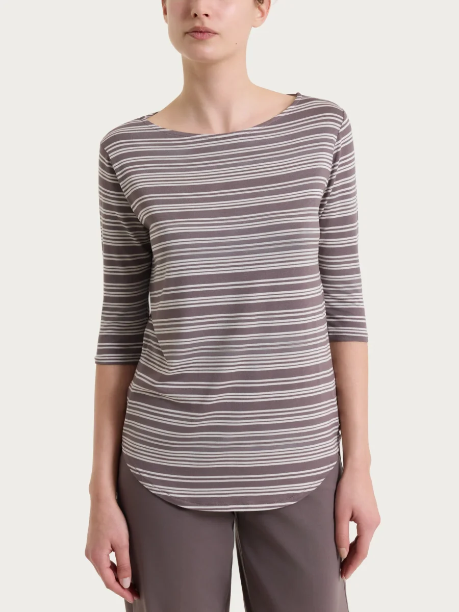 Maglietta a righe alternate da donna con scollo a barchetta e manica 3/4.