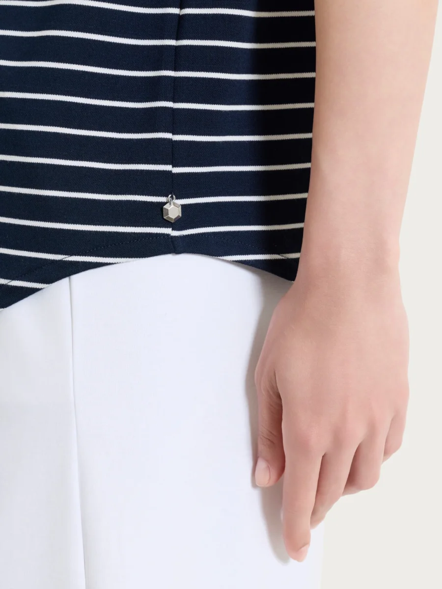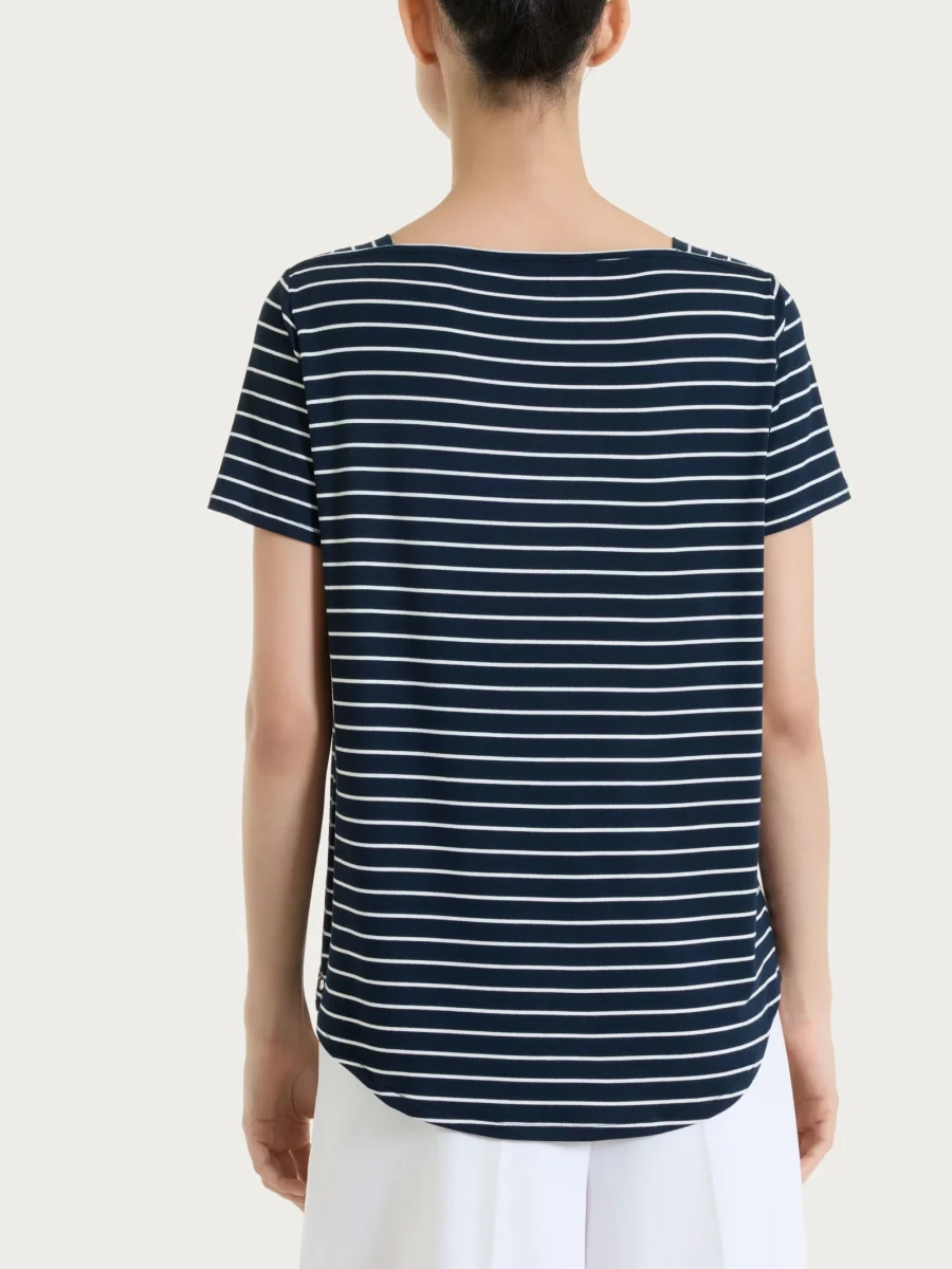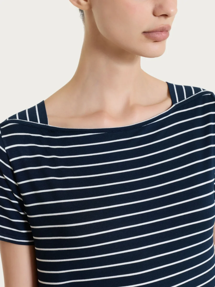 Maglietta a righe con collo a barchetta in Summer Light Piquet – Fant.Bleu