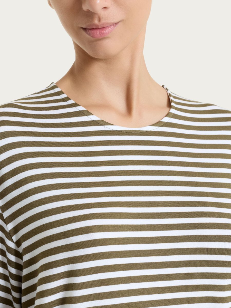 Maglietta da donna con girocollo e manica al gomito, dal design essenziale e contemporaneo.
