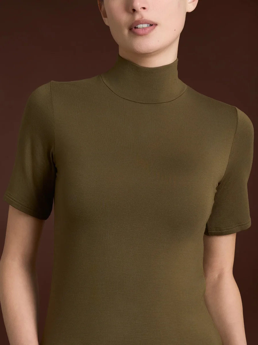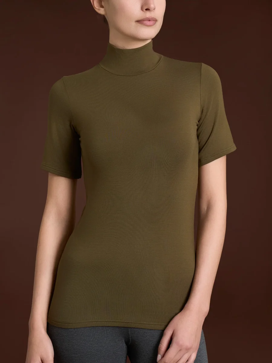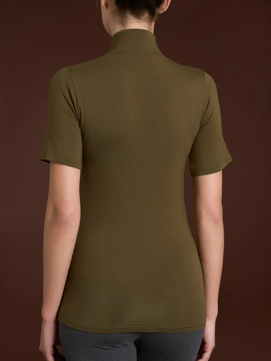 Maglietta collo alto in Eco Viscosa – Dark Olive