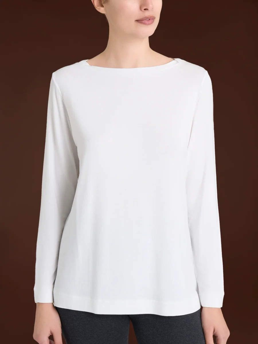 Questo capo con una vestibilità è morbida e fluida, per una maggiore comodità e praticità quotidiana, è tinta unita con collo a barchetta e a manica lunga.