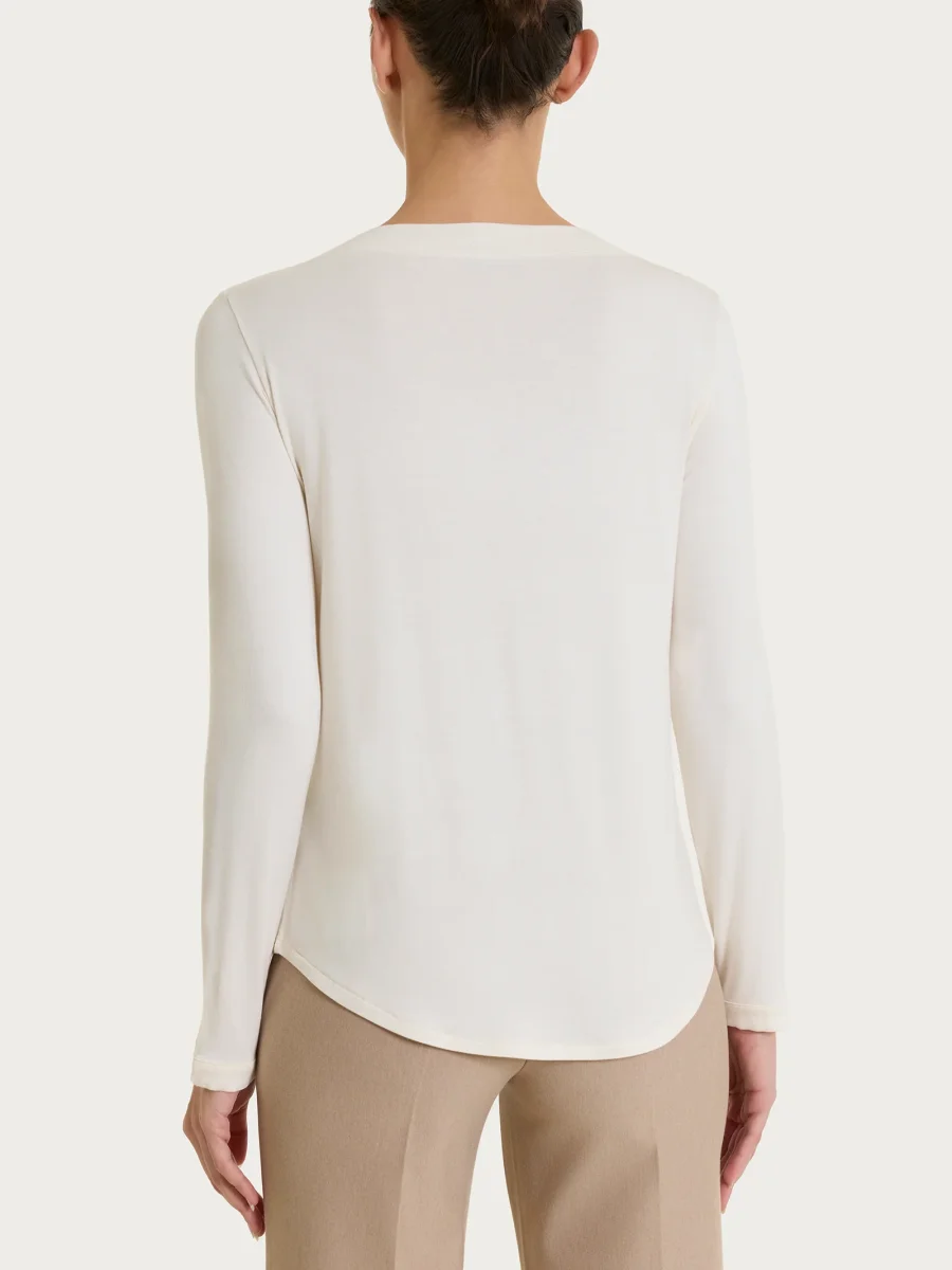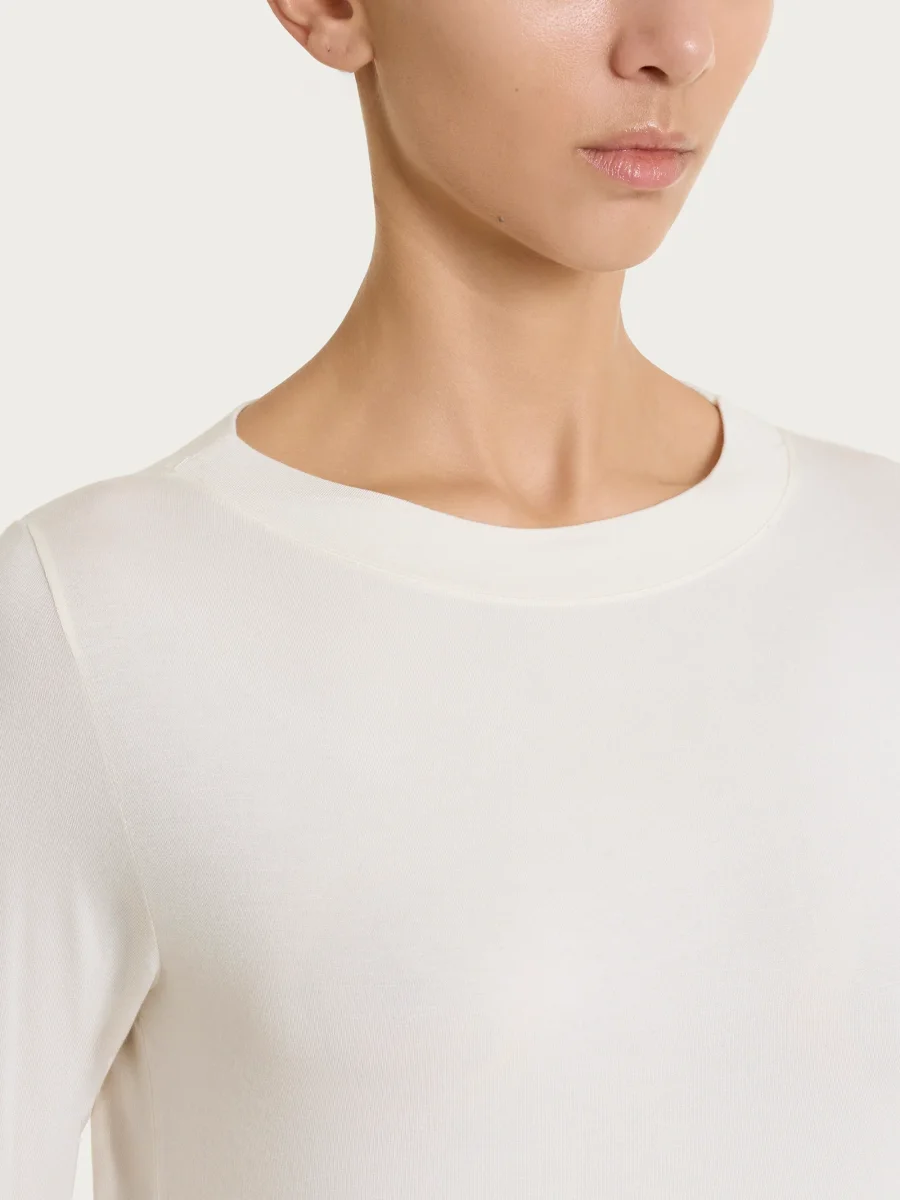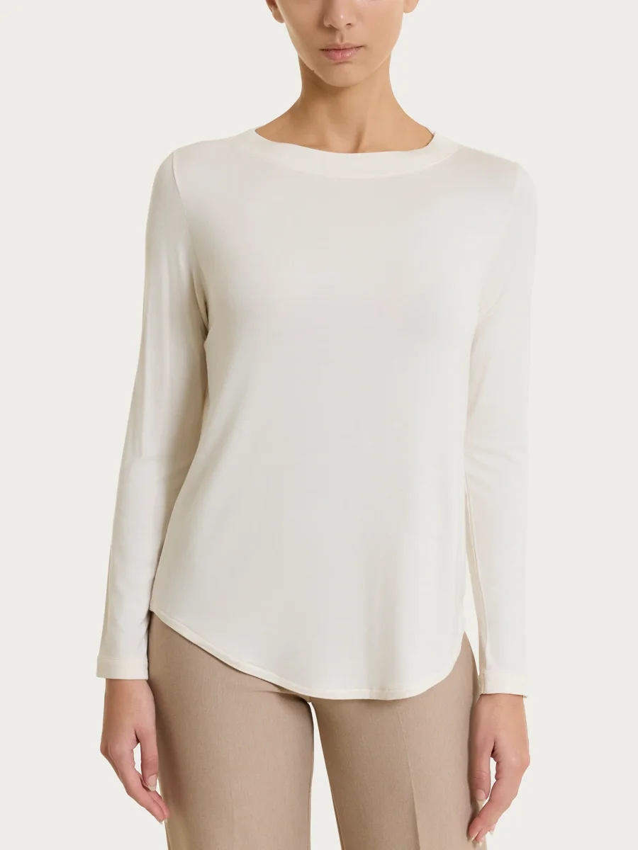 Maglietta con collo a barchetta in Eco Viscosa – Avorio