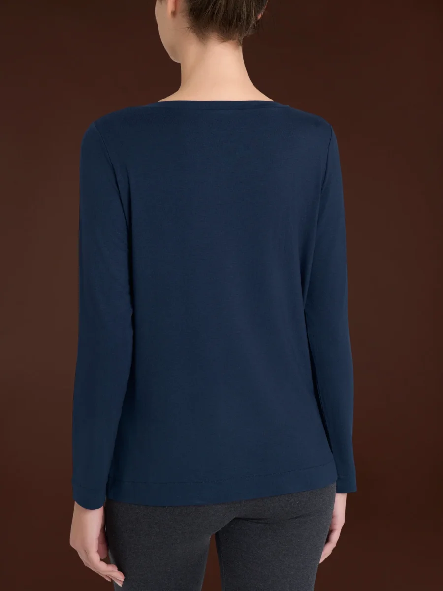Questo capo con una vestibilità è morbida e fluida, per una maggiore comodità e praticità quotidiana, è tinta unita con collo a barchetta e a manica lunga.