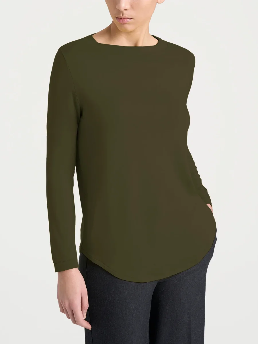 Maglietta con collo a barchetta e manica lunga da donna.