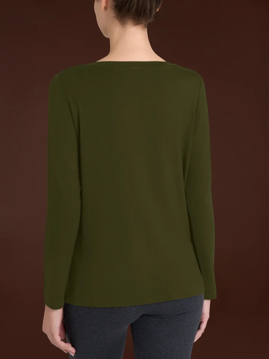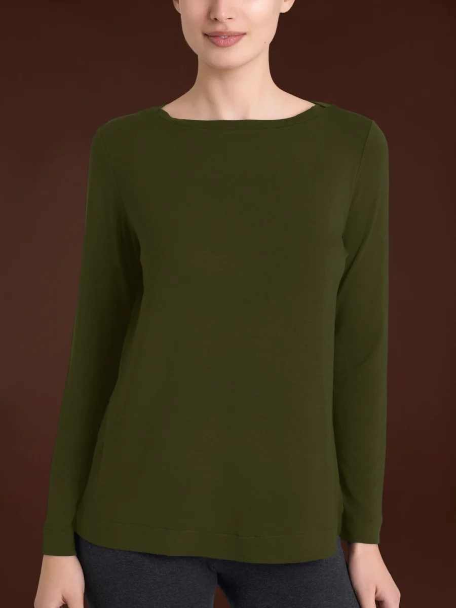 Maglietta con collo a barchetta in Eco Viscosa – Dark Olive