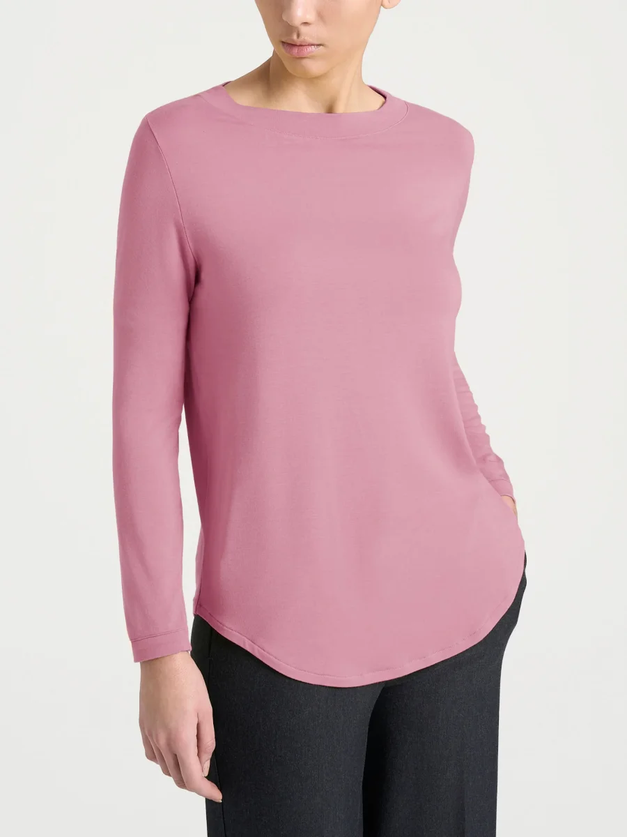 Maglietta con collo a barchetta e manica lunga da donna.