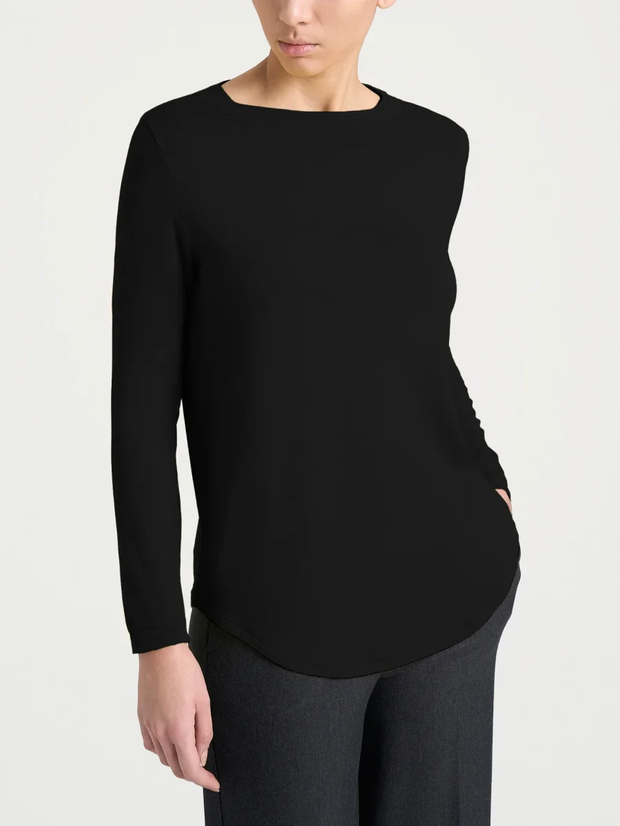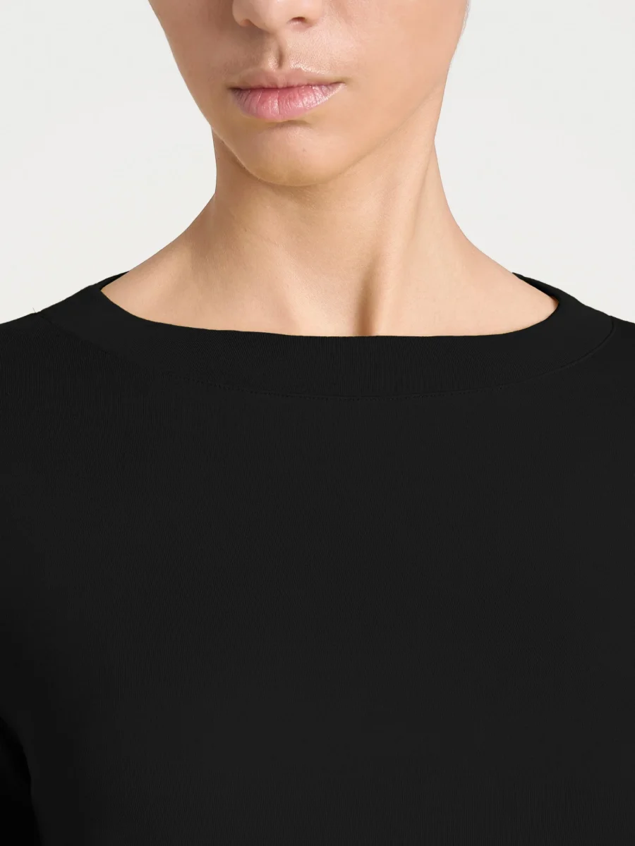 Maglietta con collo a barchetta in Eco Viscosa – Nero