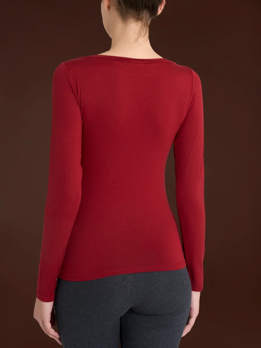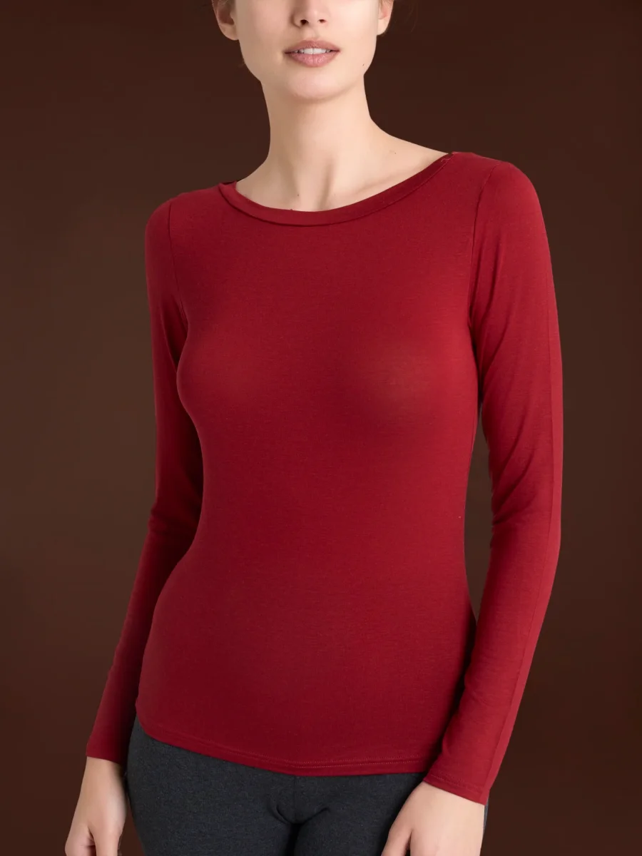 Maglietta con collo a barchetta in filato Tenderwool – Amarena