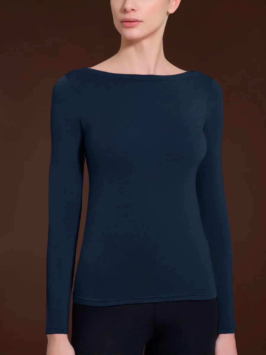 Maglietta con collo a barchetta in filato Tenderwool – Bleu