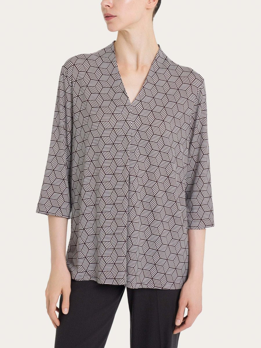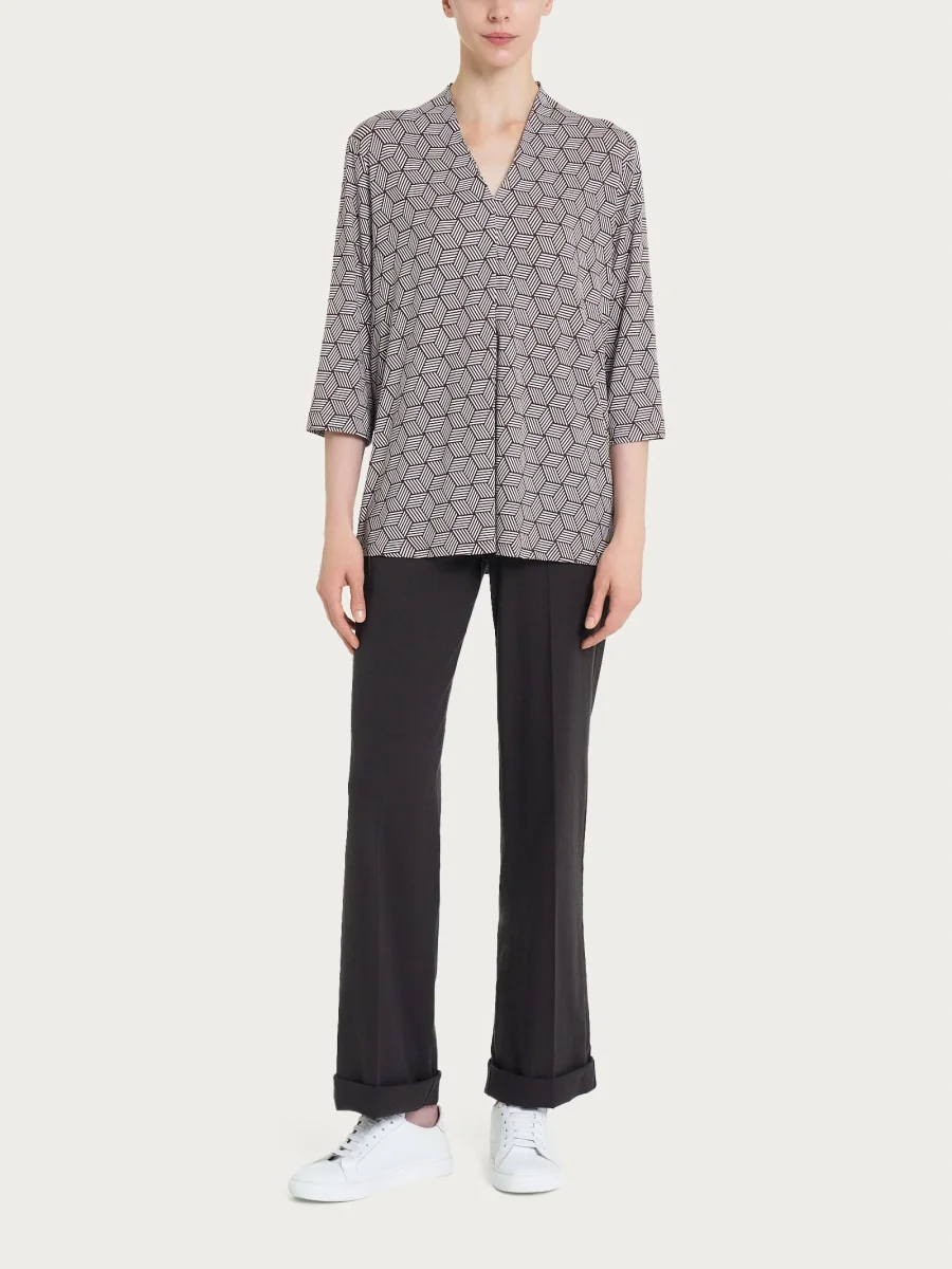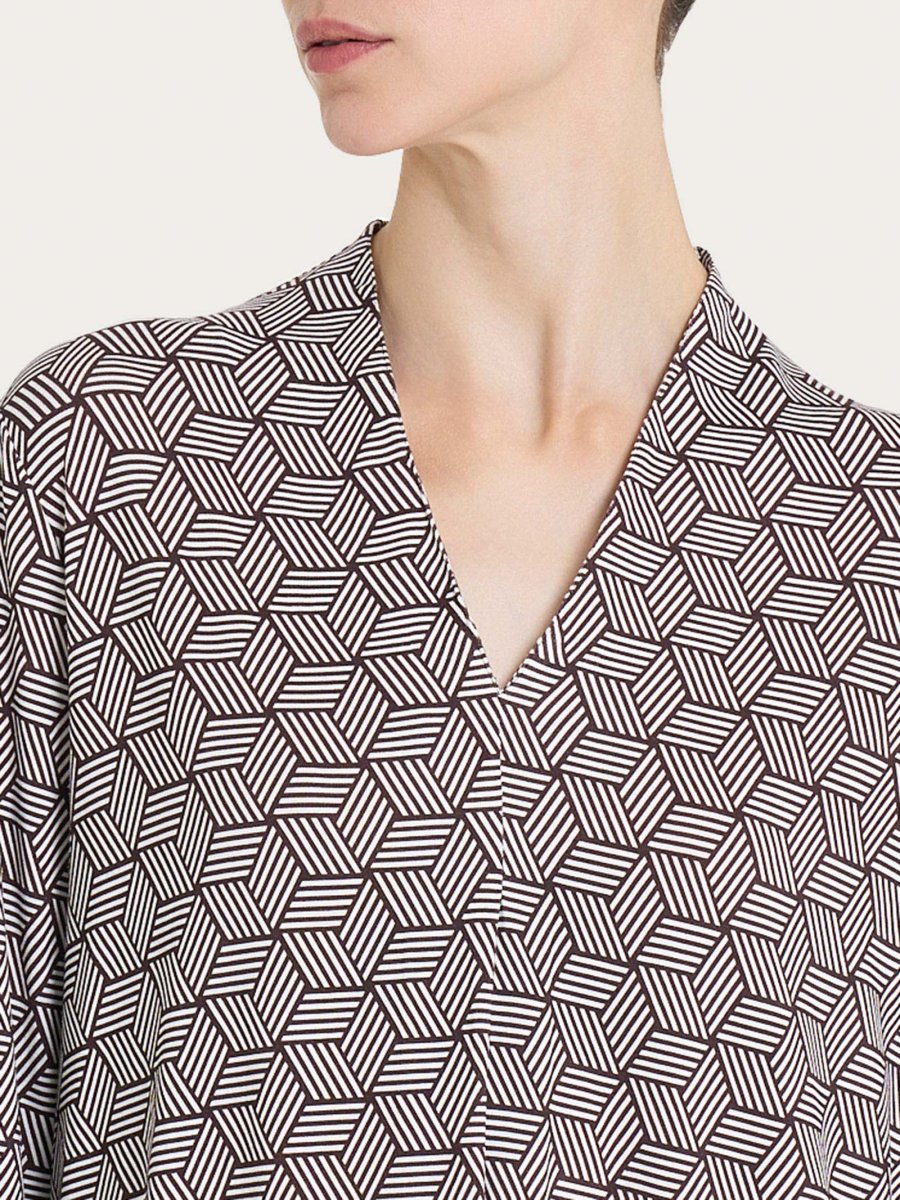Maglietta con geometric pattern e scollo a V in Viscosa Summer – Fant. Dawn Blue