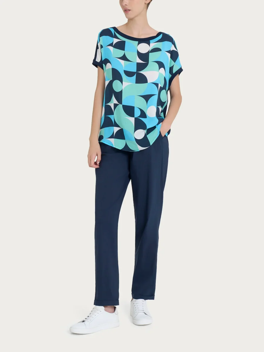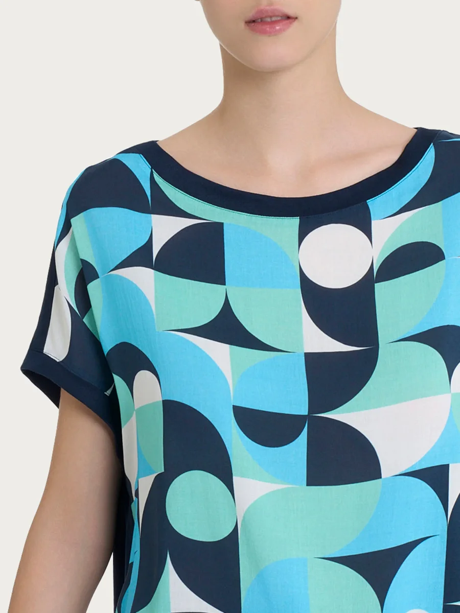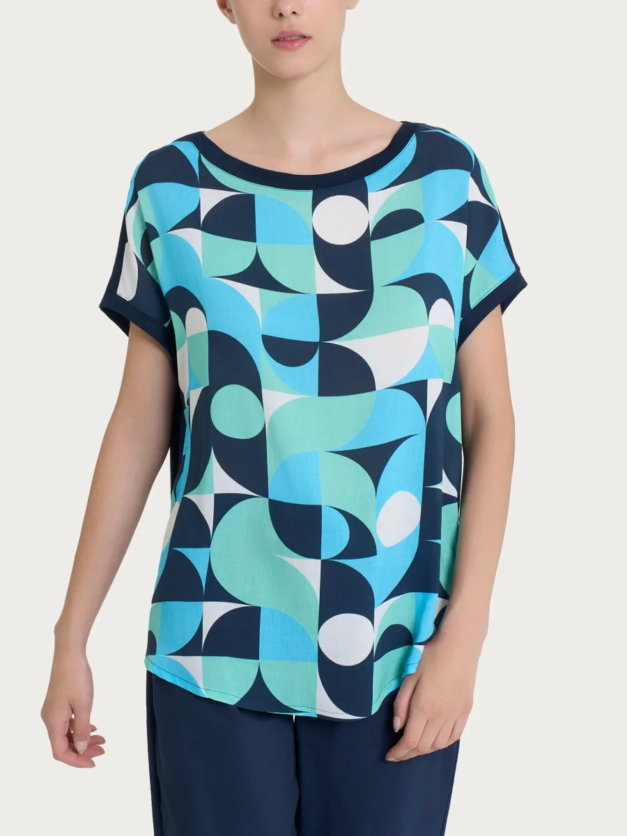 Maglietta con geometric pattern in Misto Viscosa – Fant. Pool Blue