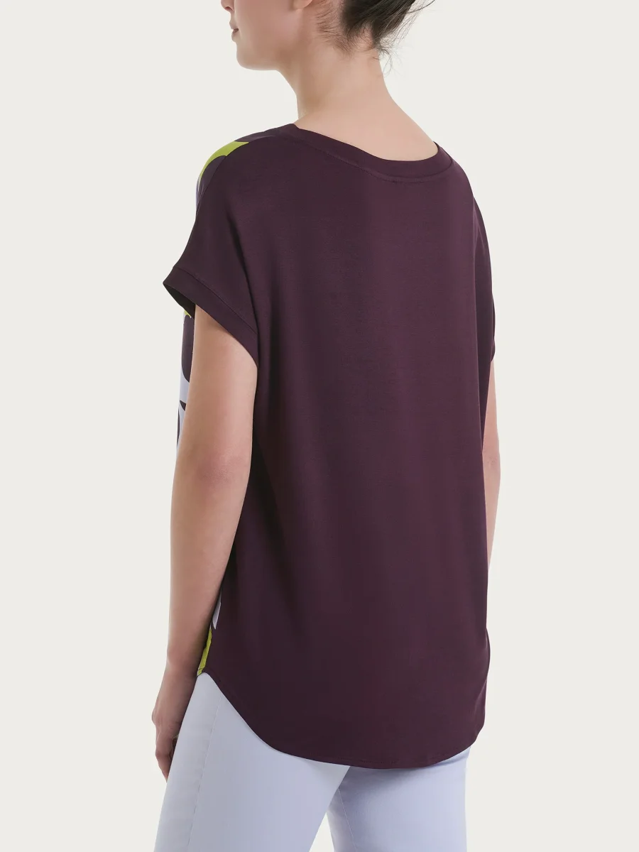 Il girocollo classico valorizza il collo con eleganza sobria, mentre la manica corta a kimono permette libertà di movimento, rendendo questa t-shirt ideale per le giornate più calde.