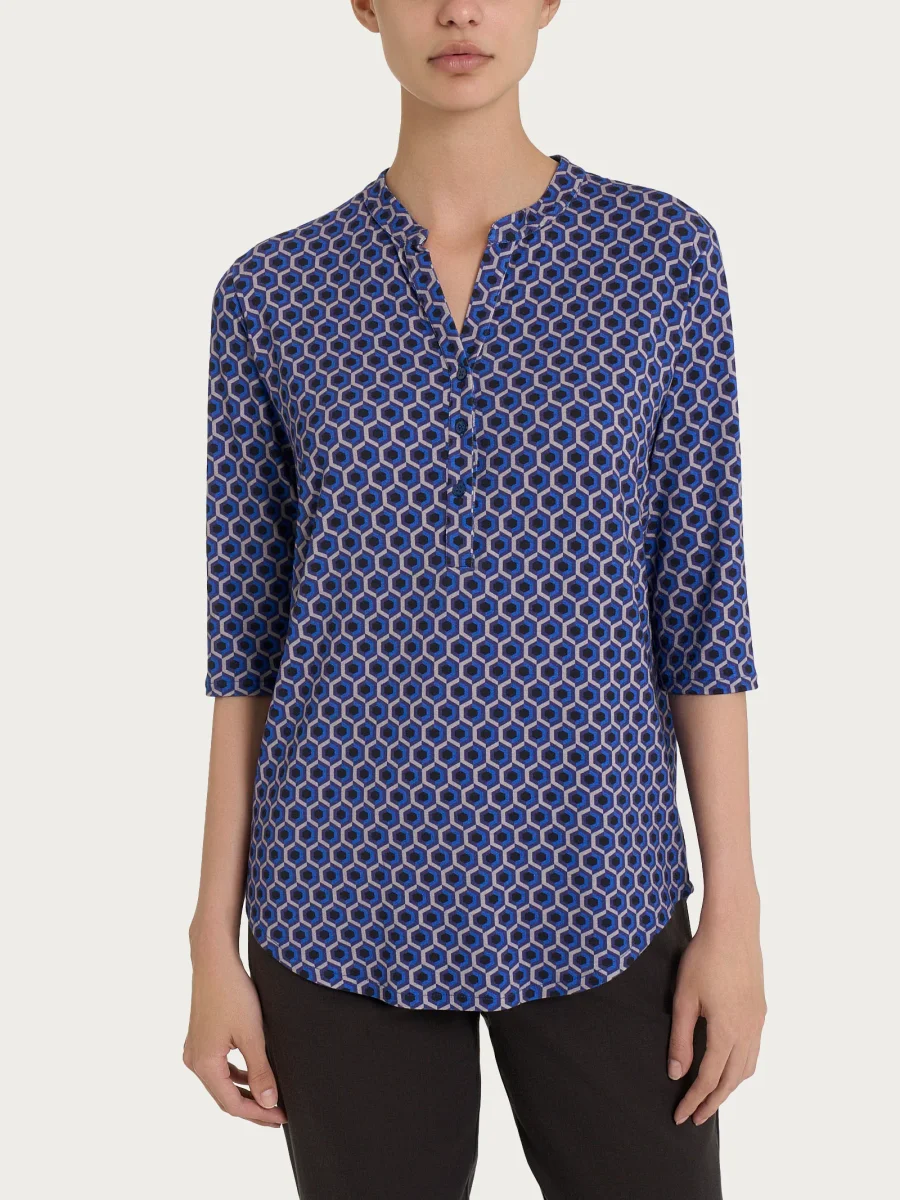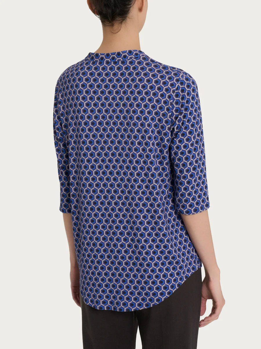 Maglietta con manica 3/4 e hexagon pattern in jersey di viscosa Crêpe – Fant. Ultimate Gray