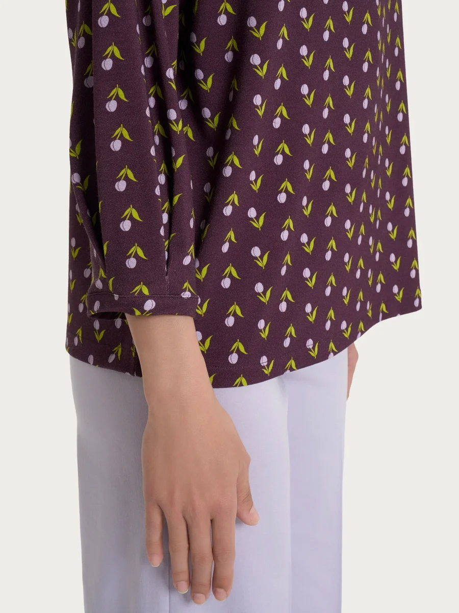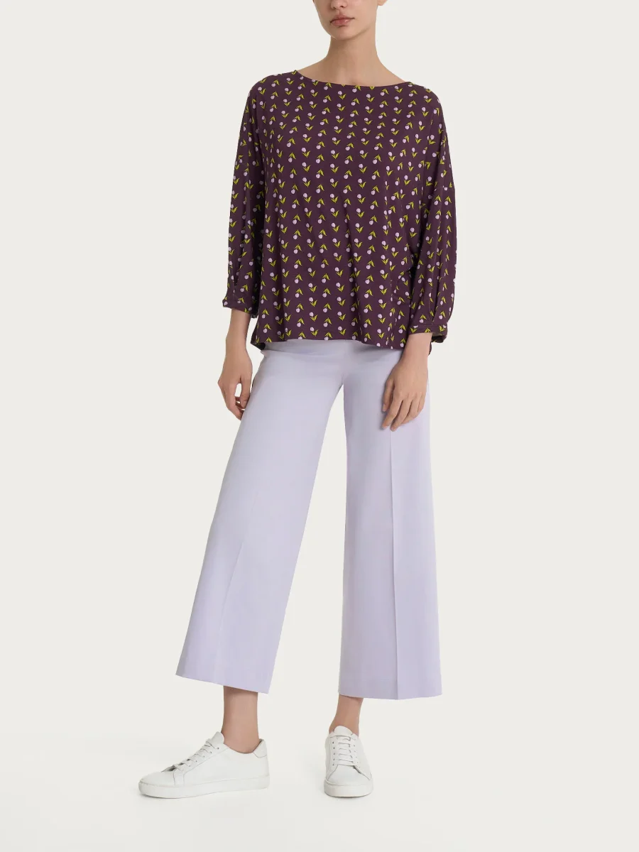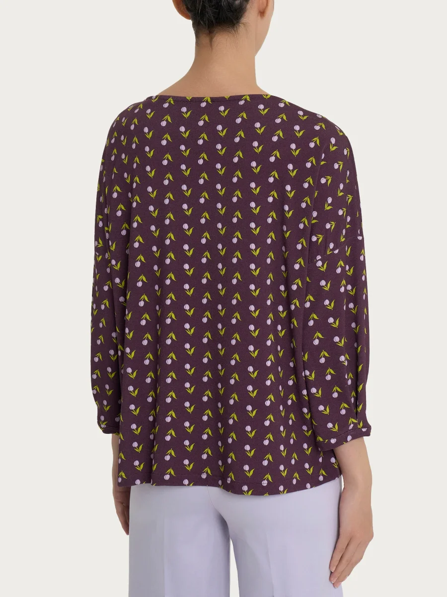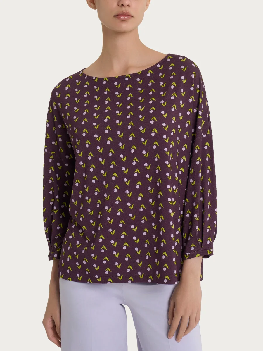 Maglietta da donna con scollo a barchetta e manica 3/4 ampia in jersey di viscosa Crêpe.