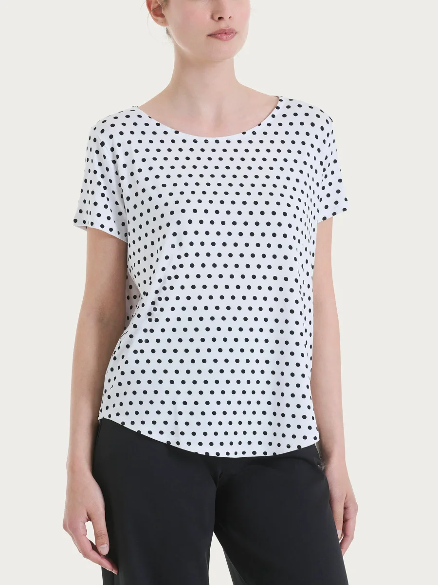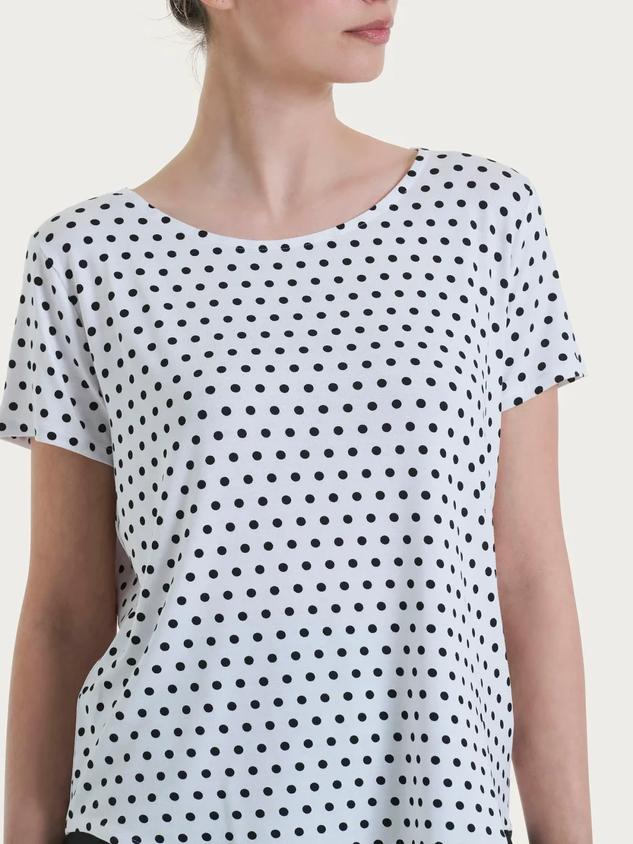 Maglietta girocollo con manica corta e stampa pois all over in Viscosa Summer.