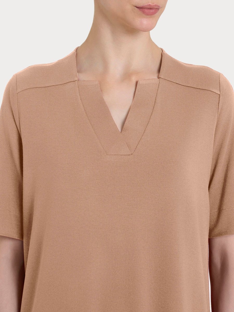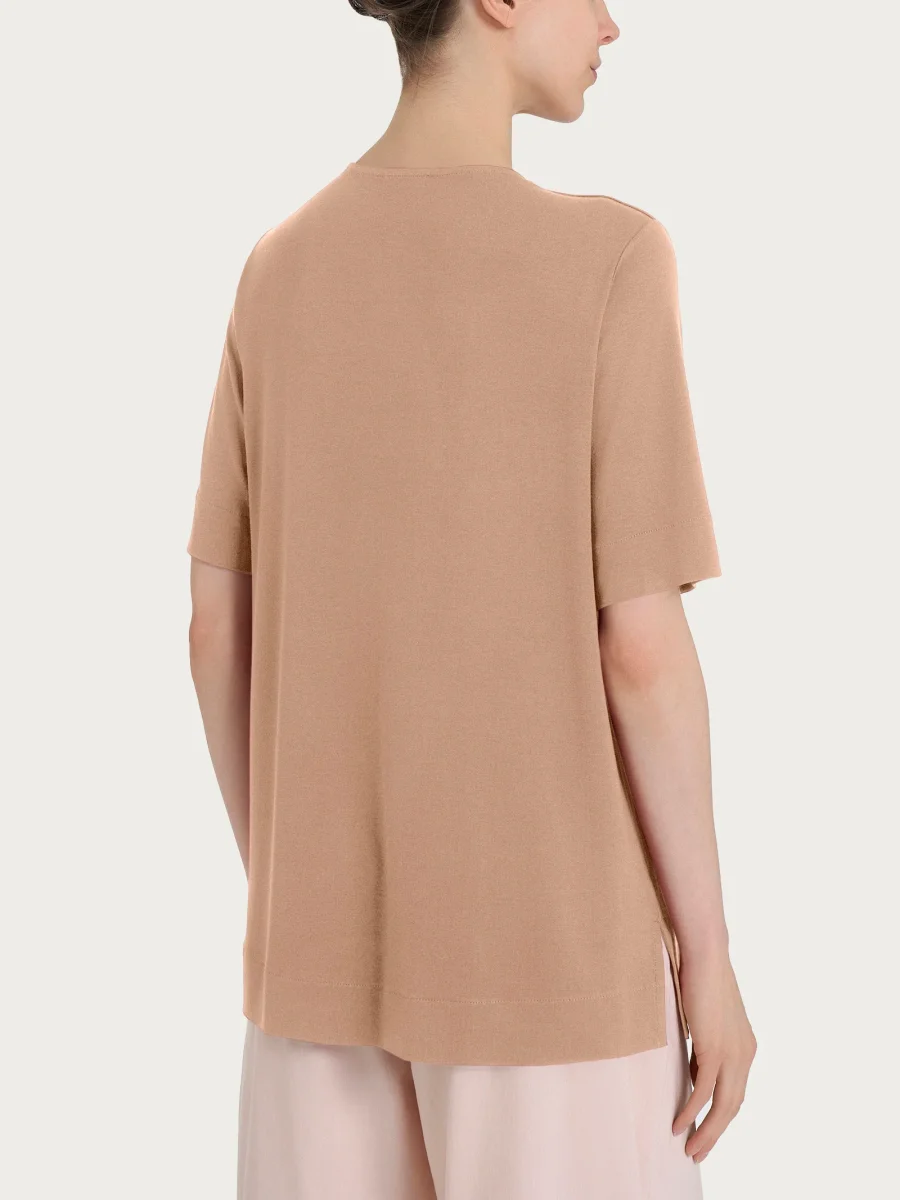 La vestibilità soft offre una caduta fluida, assicurando il massimo comfort e adattandosi facilmente a ogni silhouette con naturalezza e grazia.