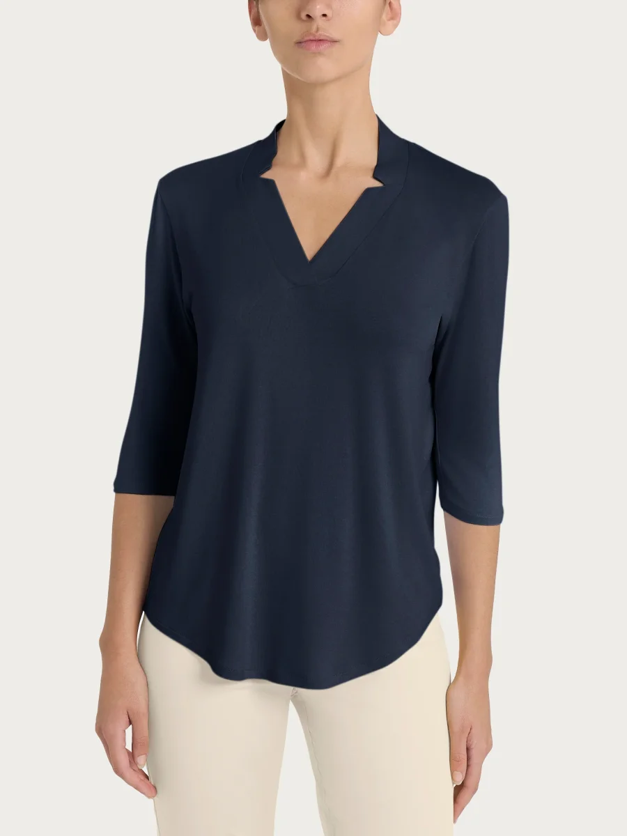 Maglietta con scollo a V in Viscosa Summer – Bleu