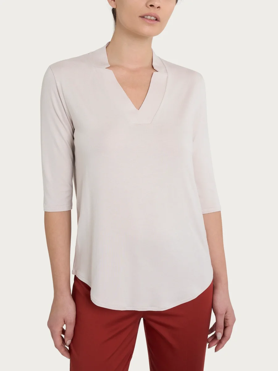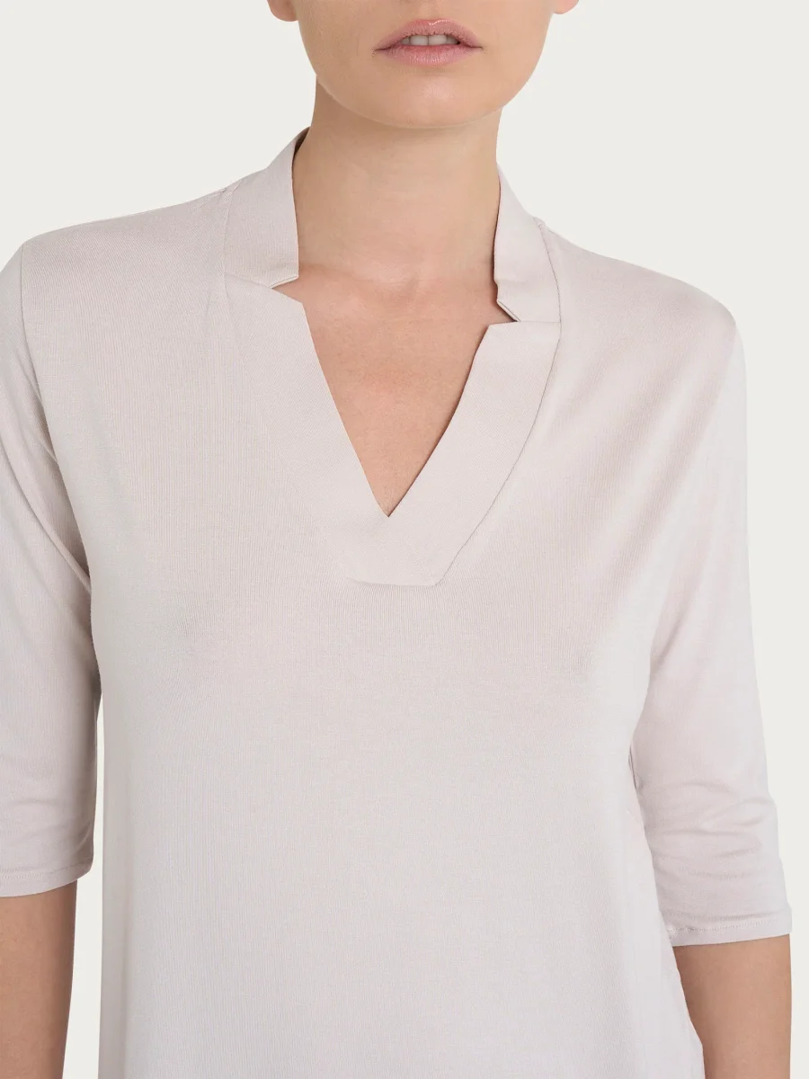 Maglietta con scollo a V in Viscosa Summer – Champignon