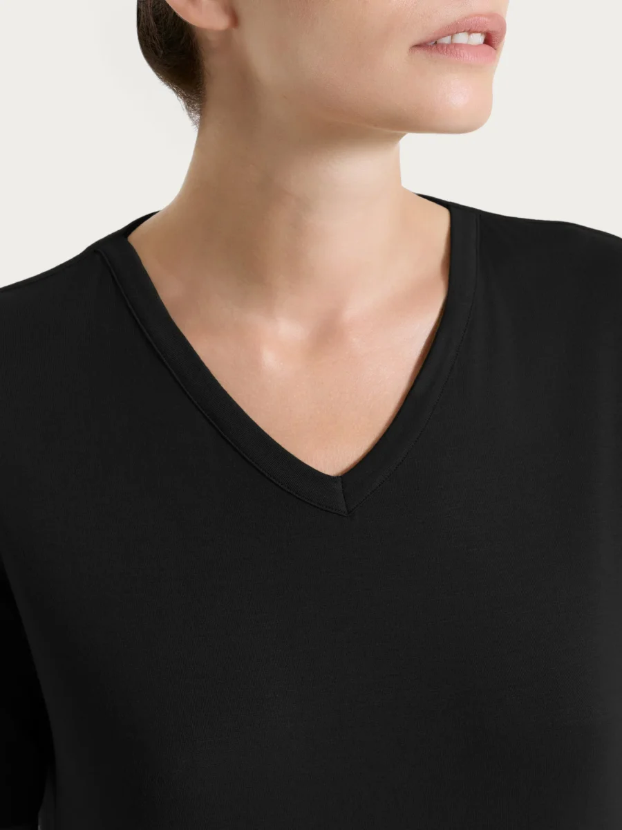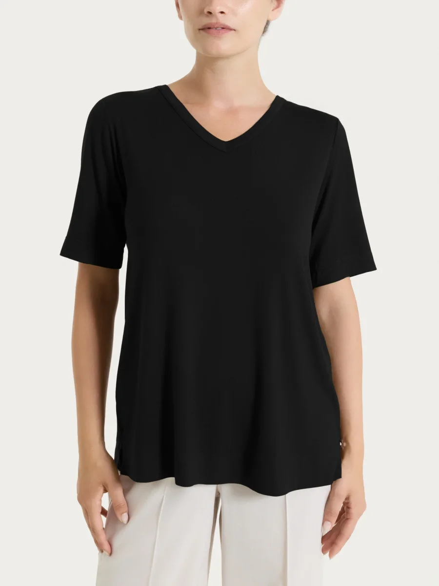 Maglietta con scollo a V in Viscosa Summer – Nero