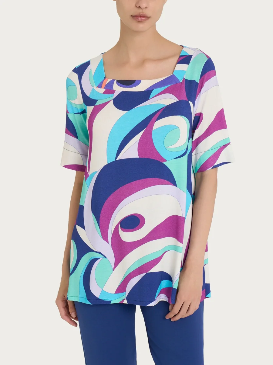 Maglietta da donna con manica al gomito e collo squadrato.