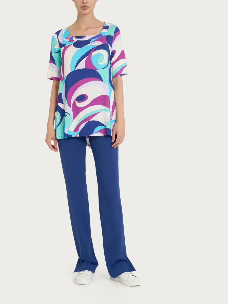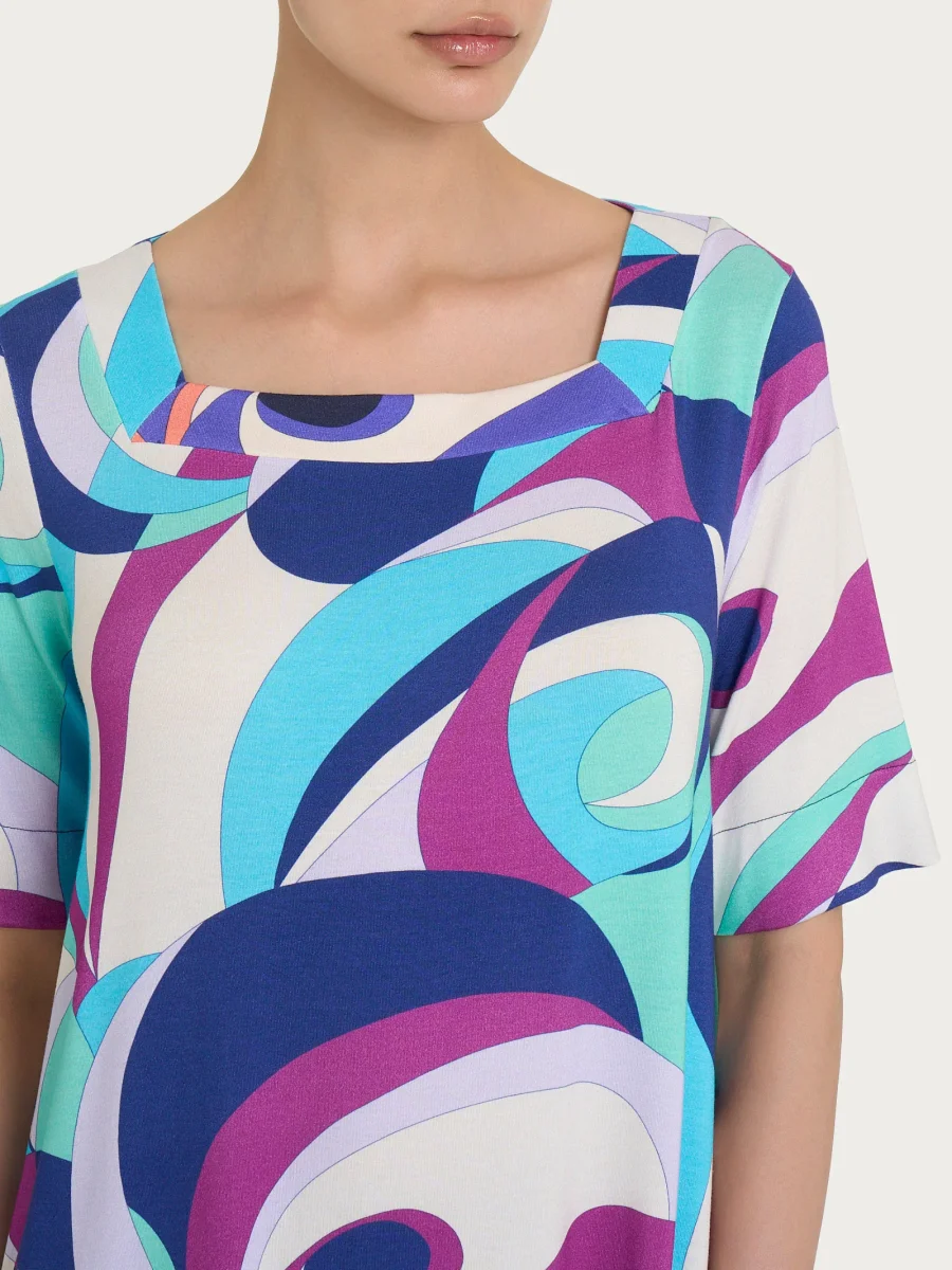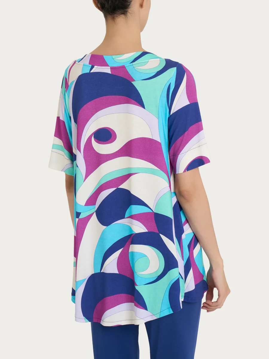 Realizzata in comodo jersey di viscosa elasticizzata, un tessuto fresco, naturale e incredibilmente confortevole.