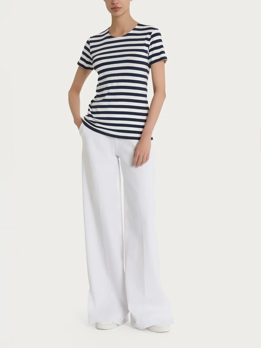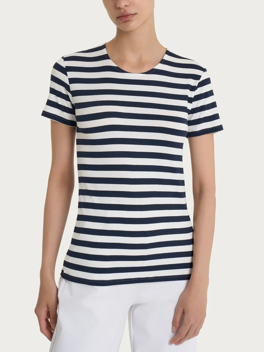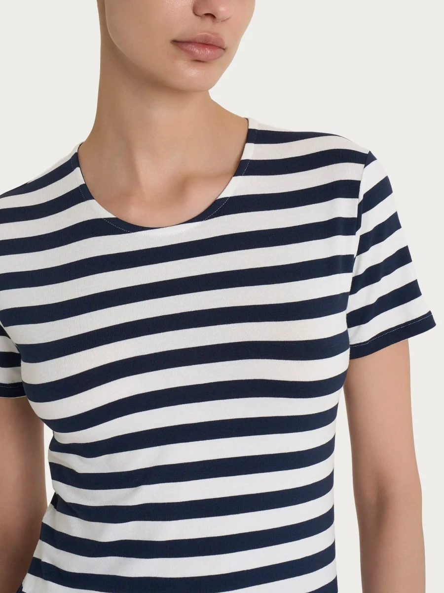Maglietta con stripes e maniche corte in Viscosa Summer – Fant. Bleu Riga Pari