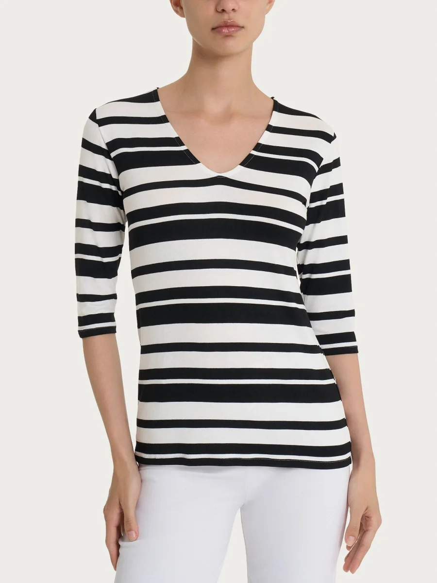 Maglietta con scollo a V da donna e maniche 3/4 in Viscosa Summer.