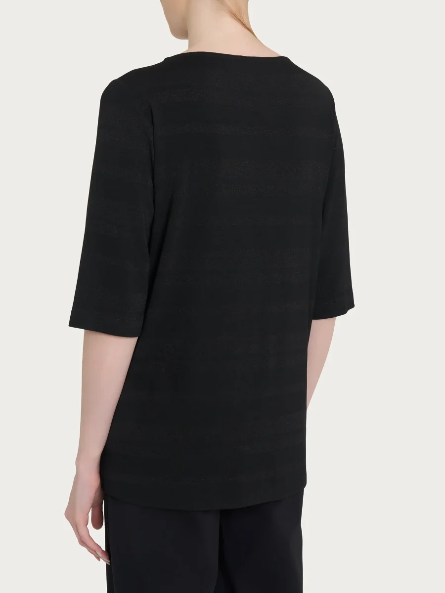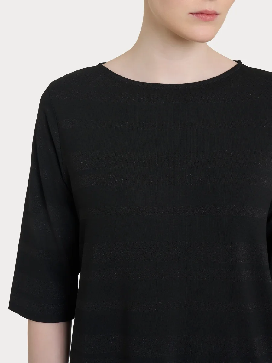 Maglietta con stripes in Viscosa Summer e Lurex – Nero