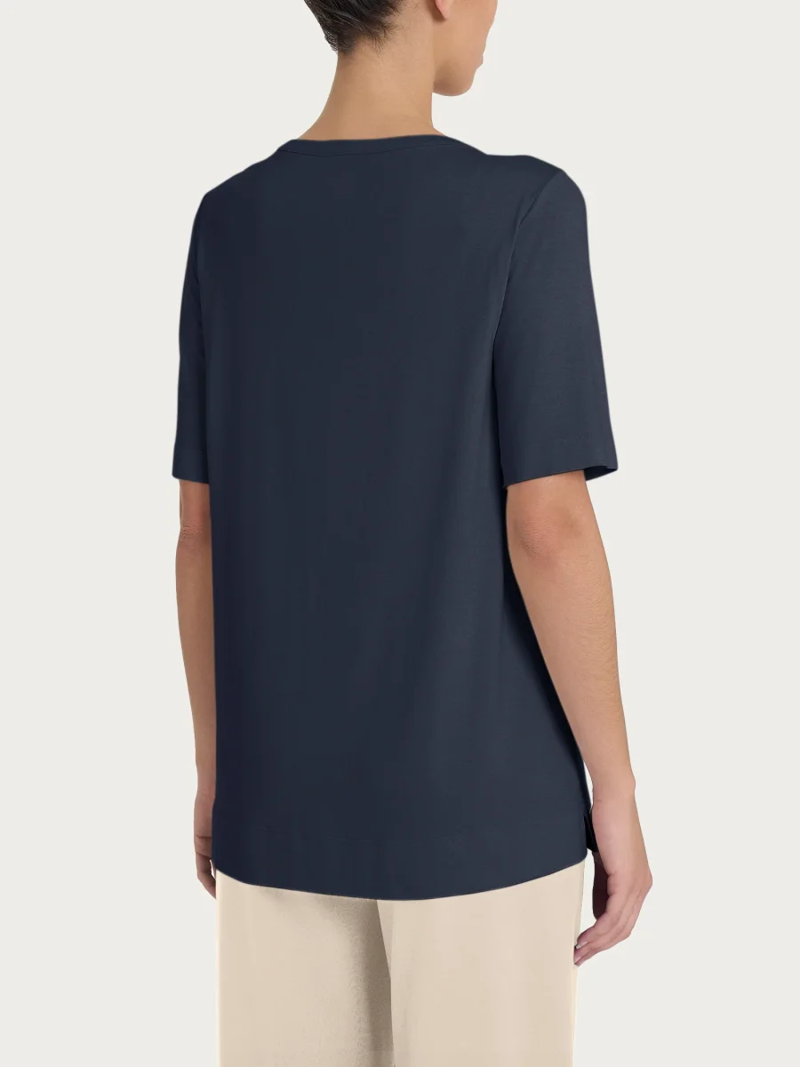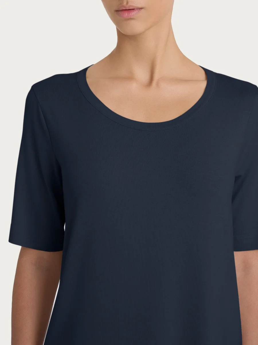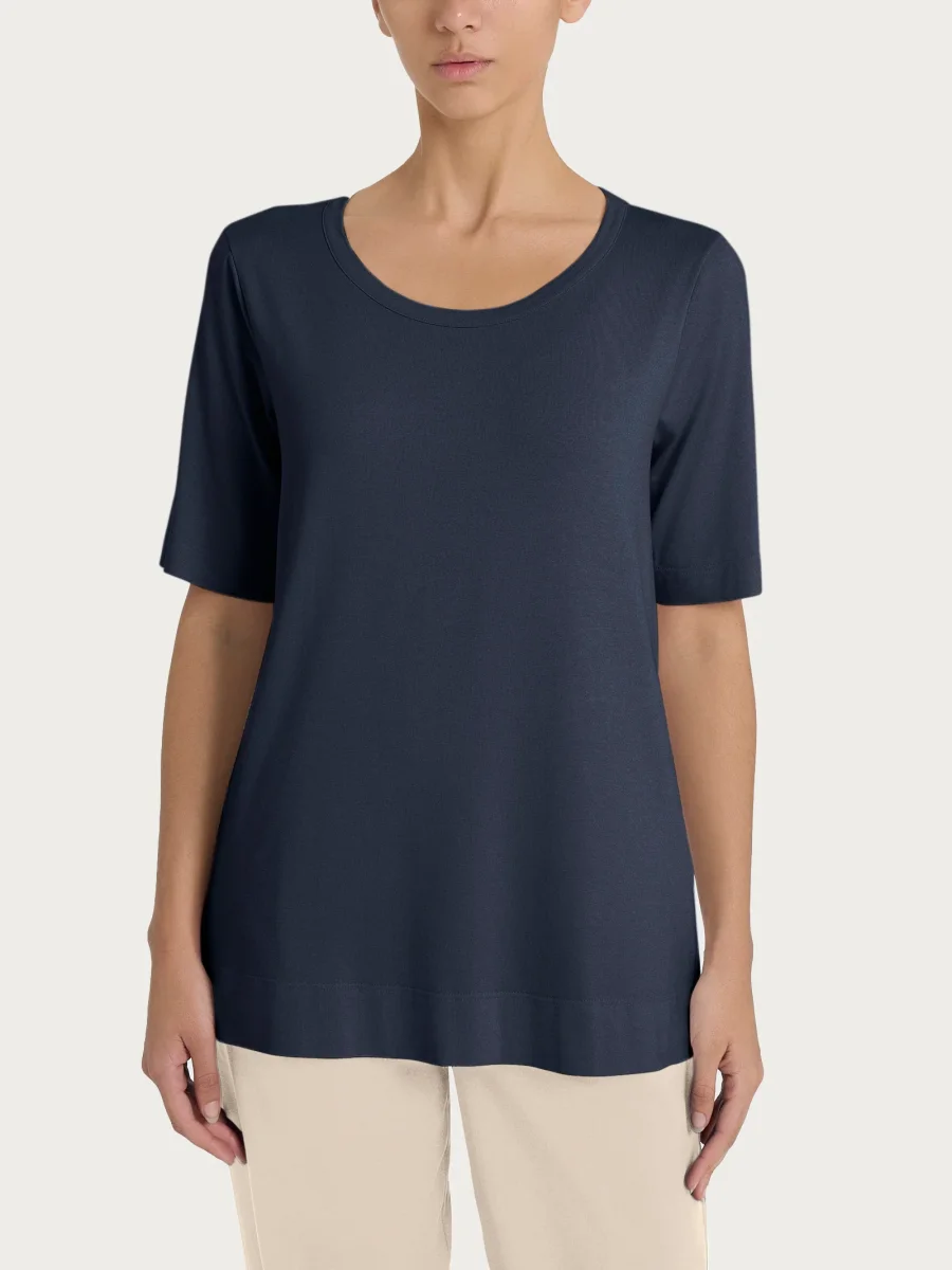Maglietta girocollo a manica corta in misto viscosa – Bleu