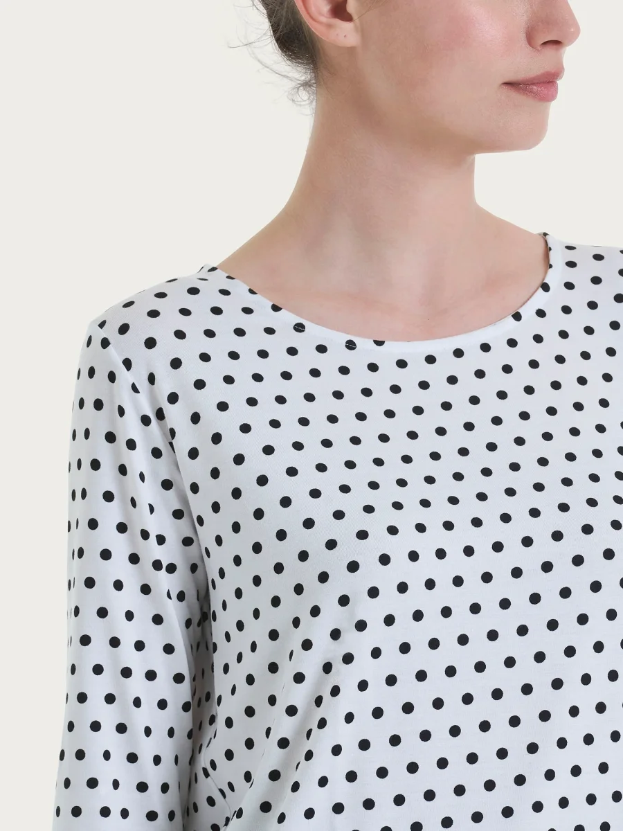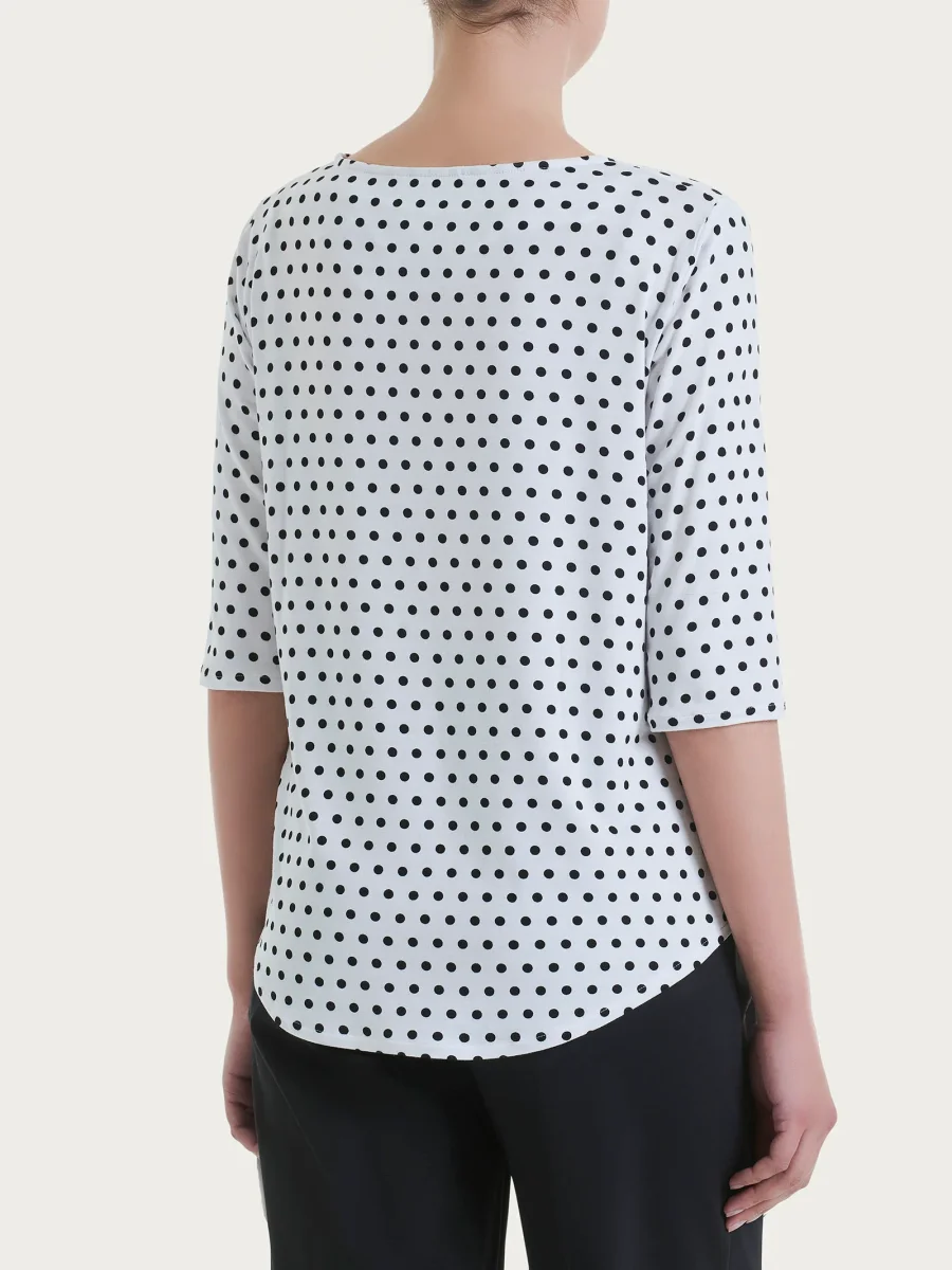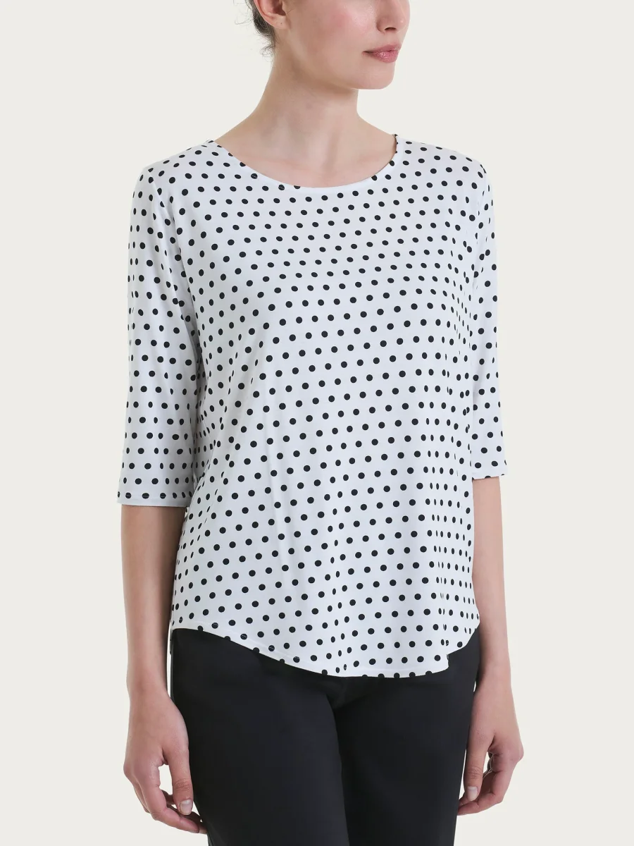 Maglietta girocollo da donna con stampa pois all over in Viscosa Summer con manica 3/4.