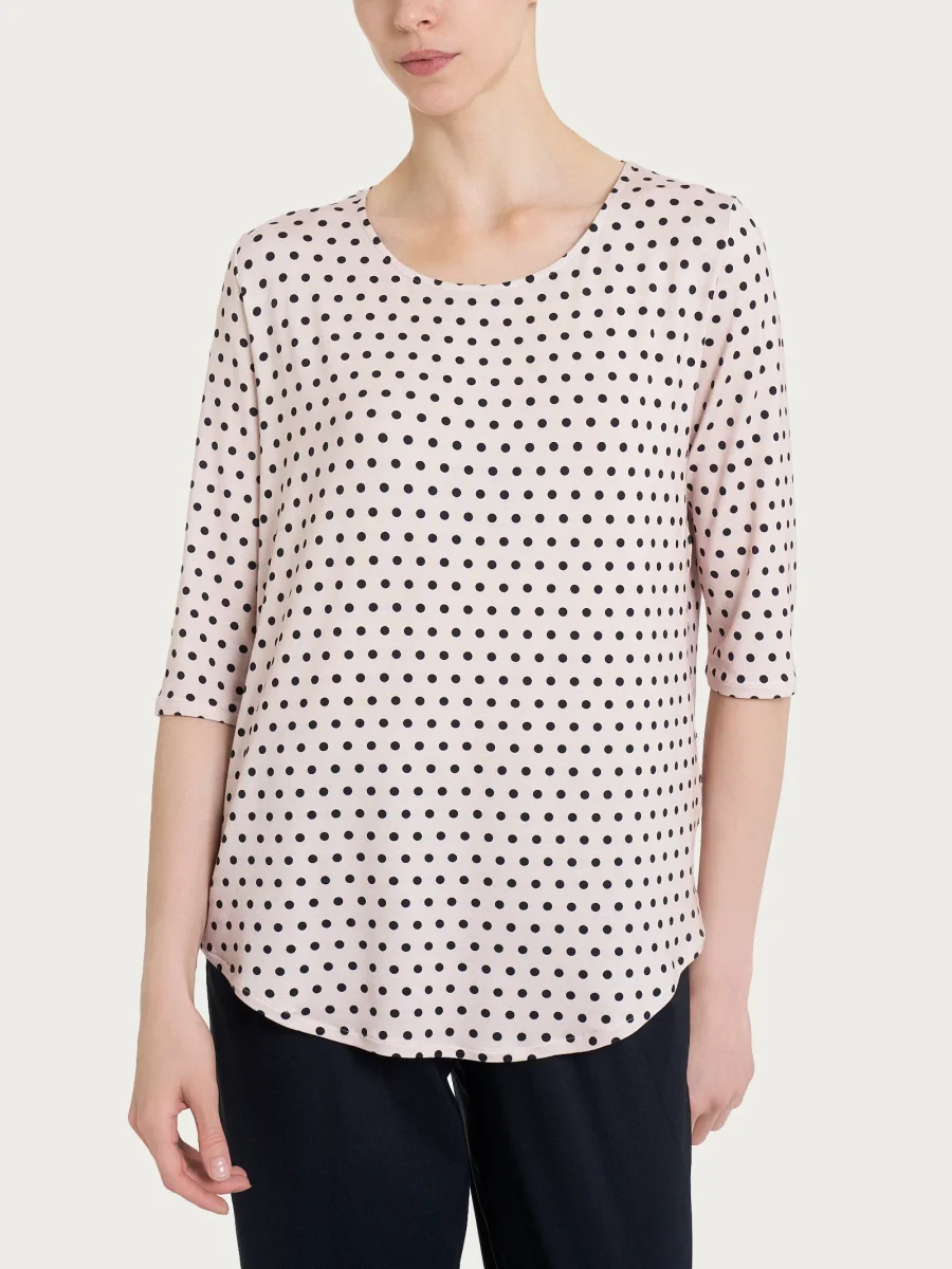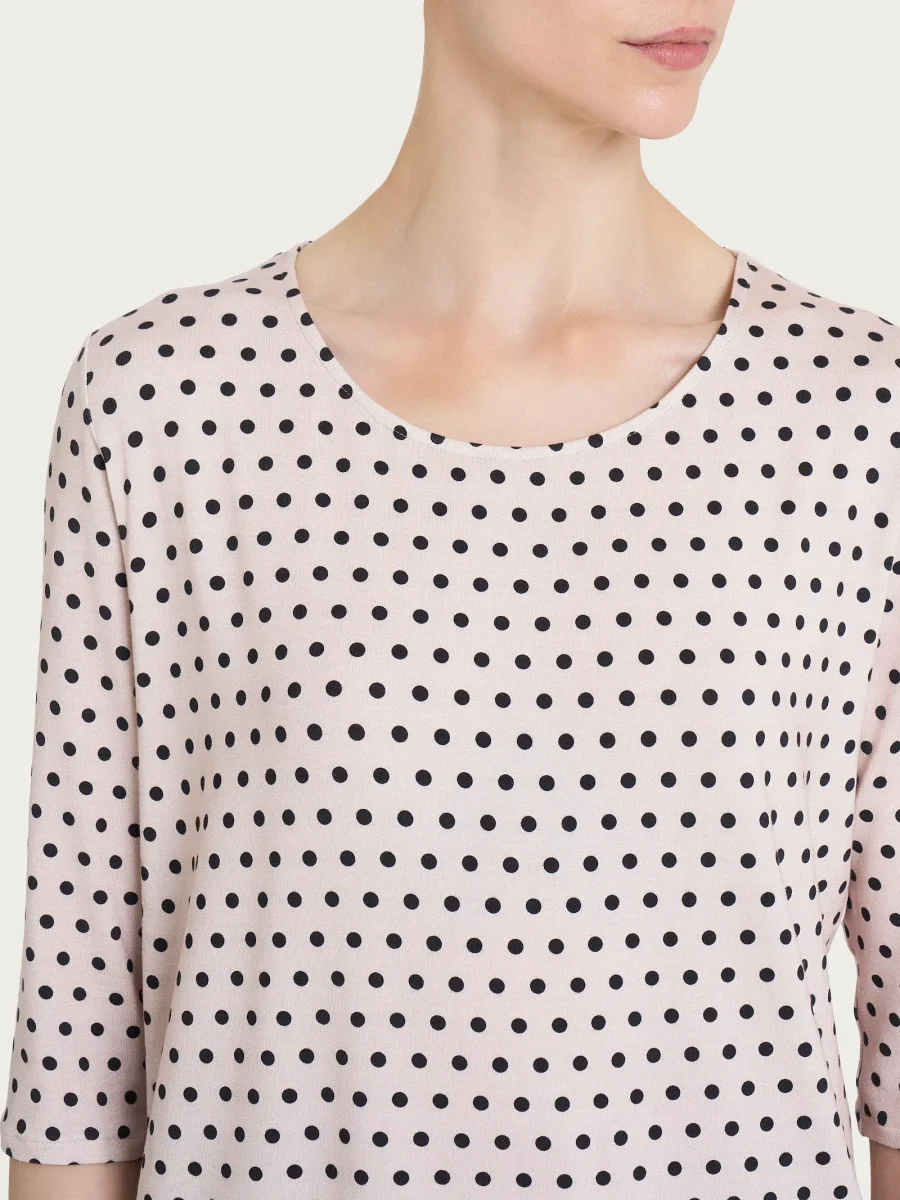 Maglietta girocollo da donna con stampa pois all over in Viscosa Summer con manica 3/4.