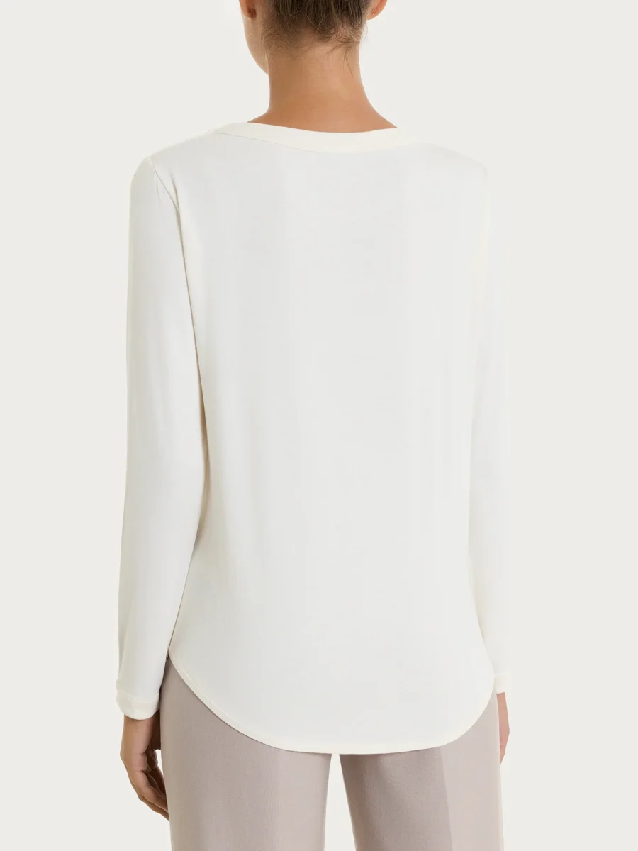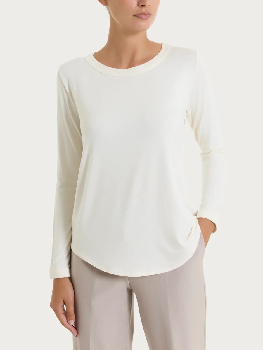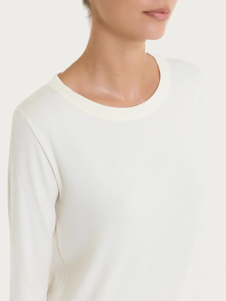 Maglietta girocollo con manica lunga in Eco Viscosa – Avorio