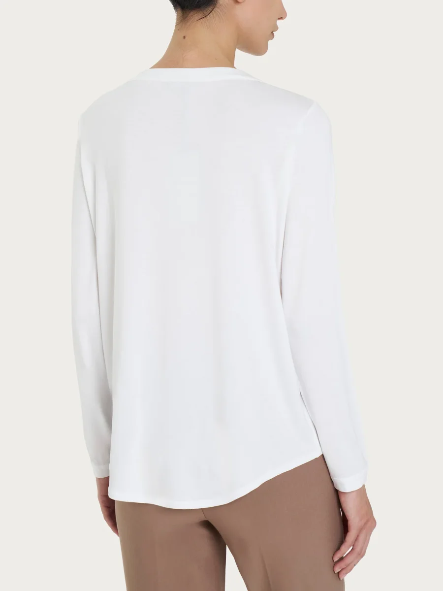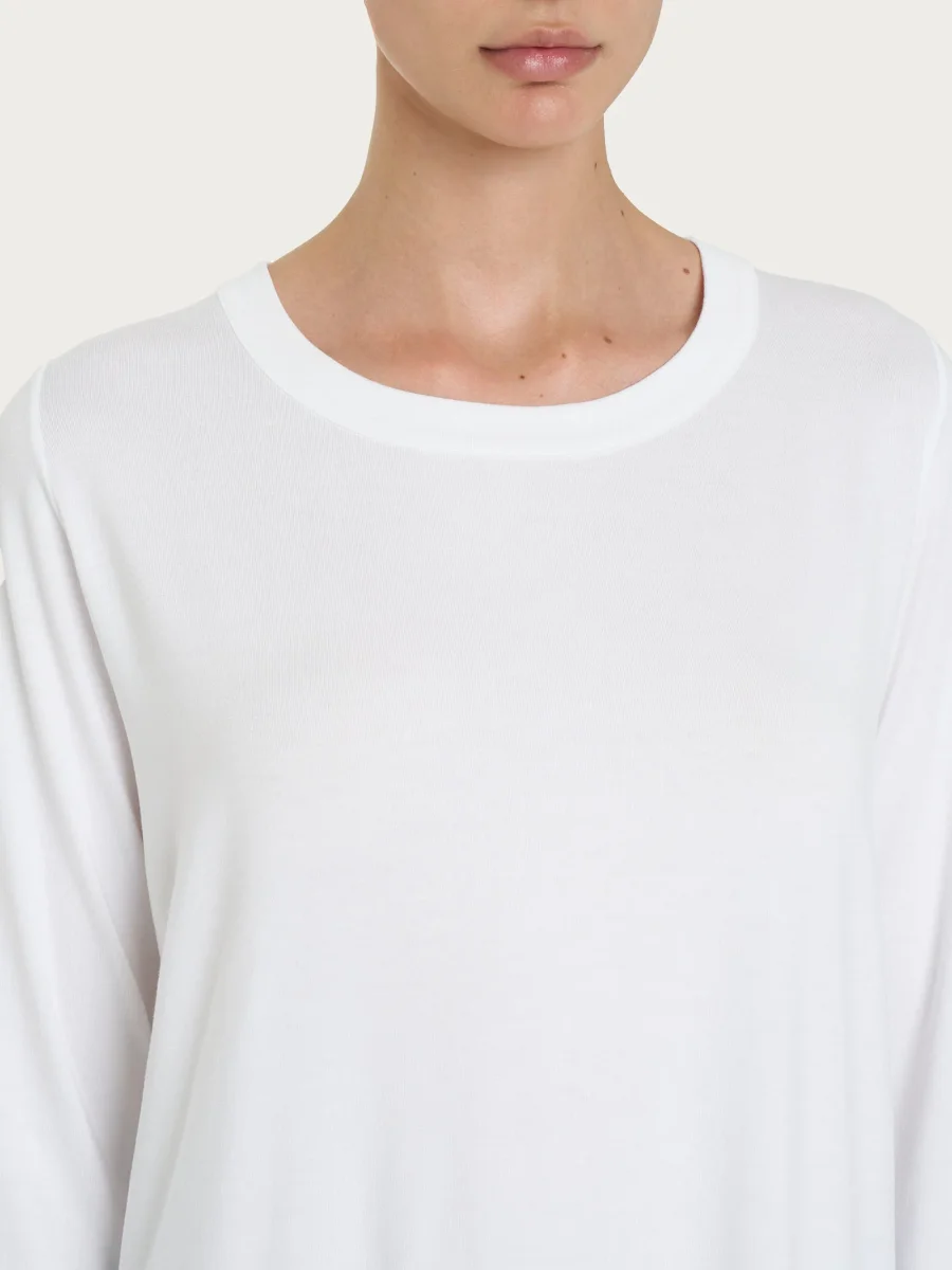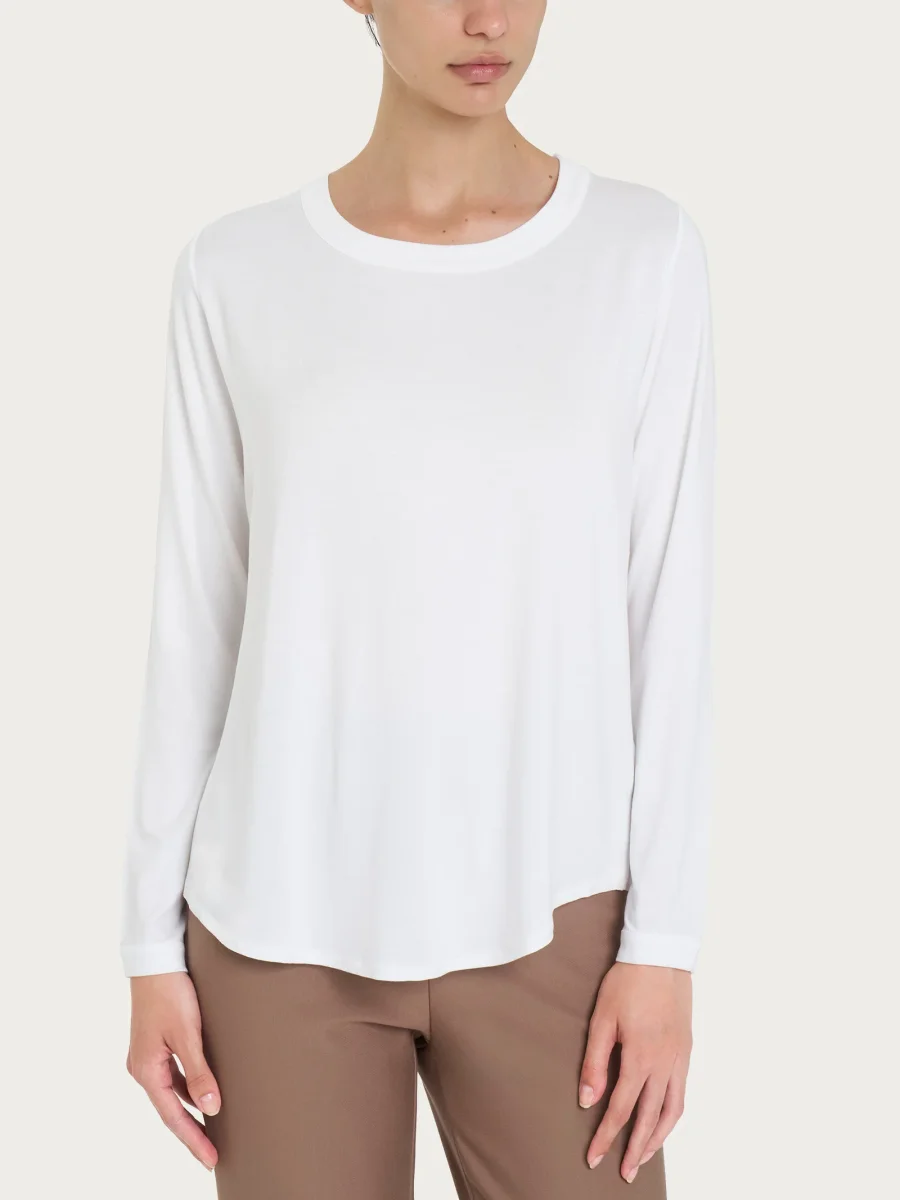 Maglietta girocollo con manica lunga in Eco Viscosa – Bianco