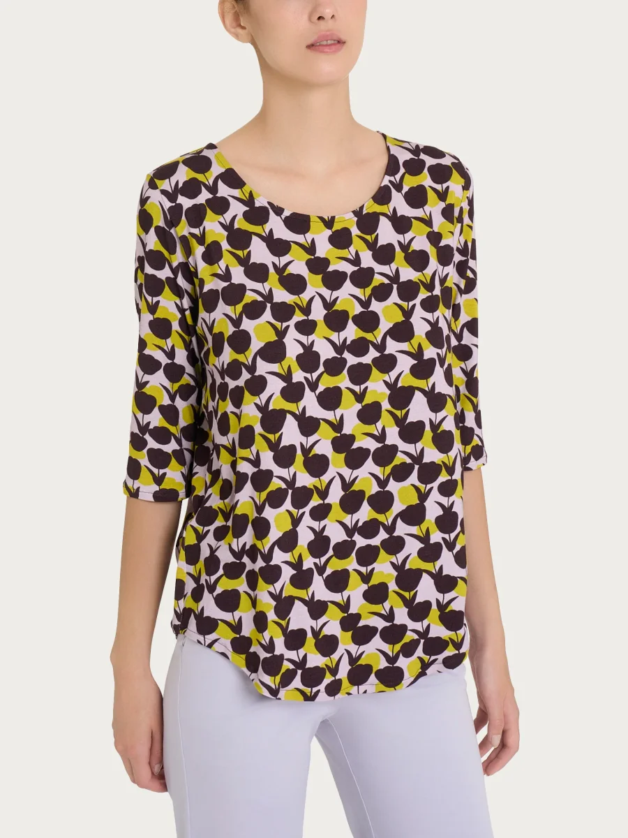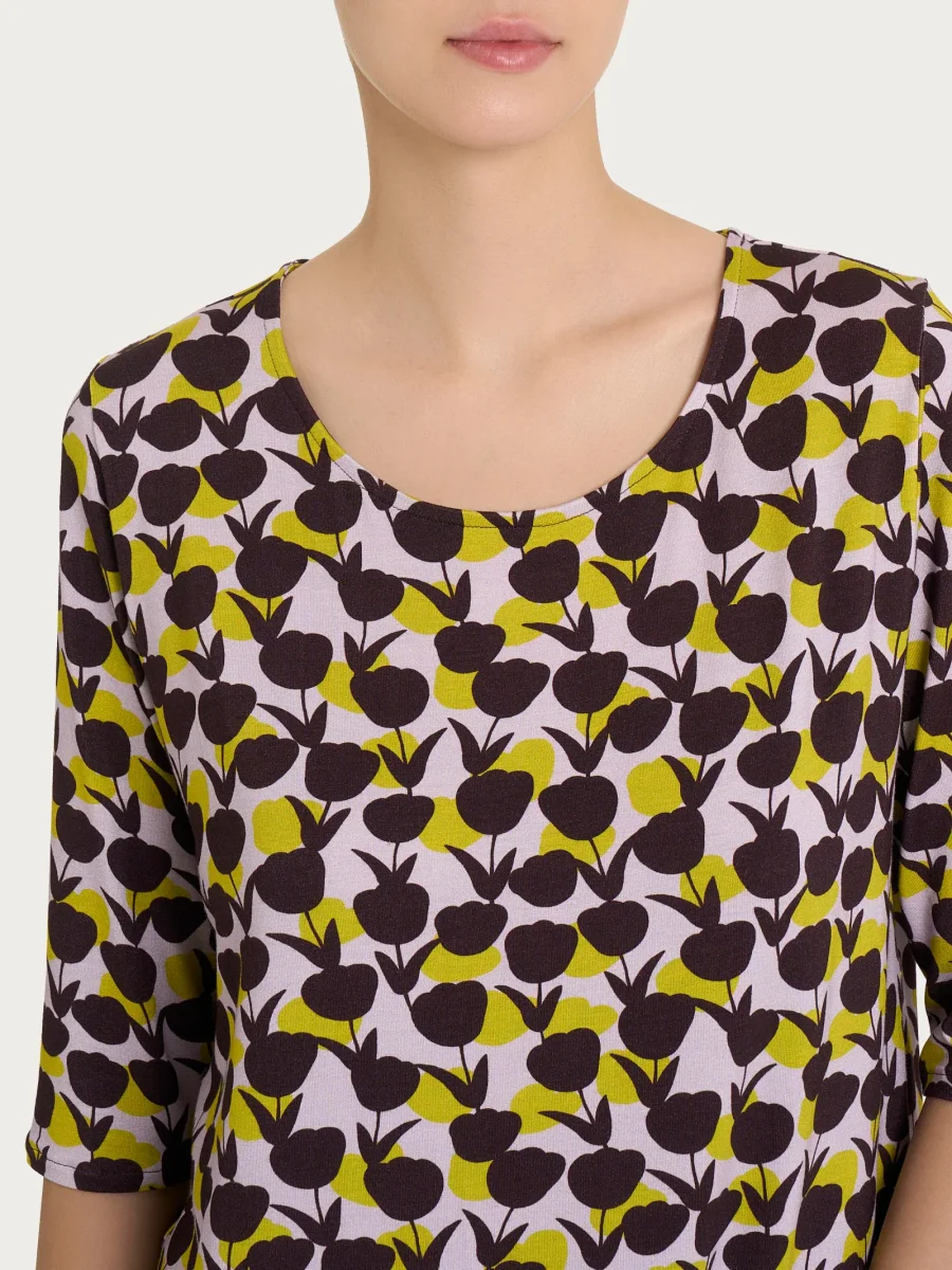 Maglietta girocollo con tulips pattern in Viscosa Summer – Fant. Grenoble Green