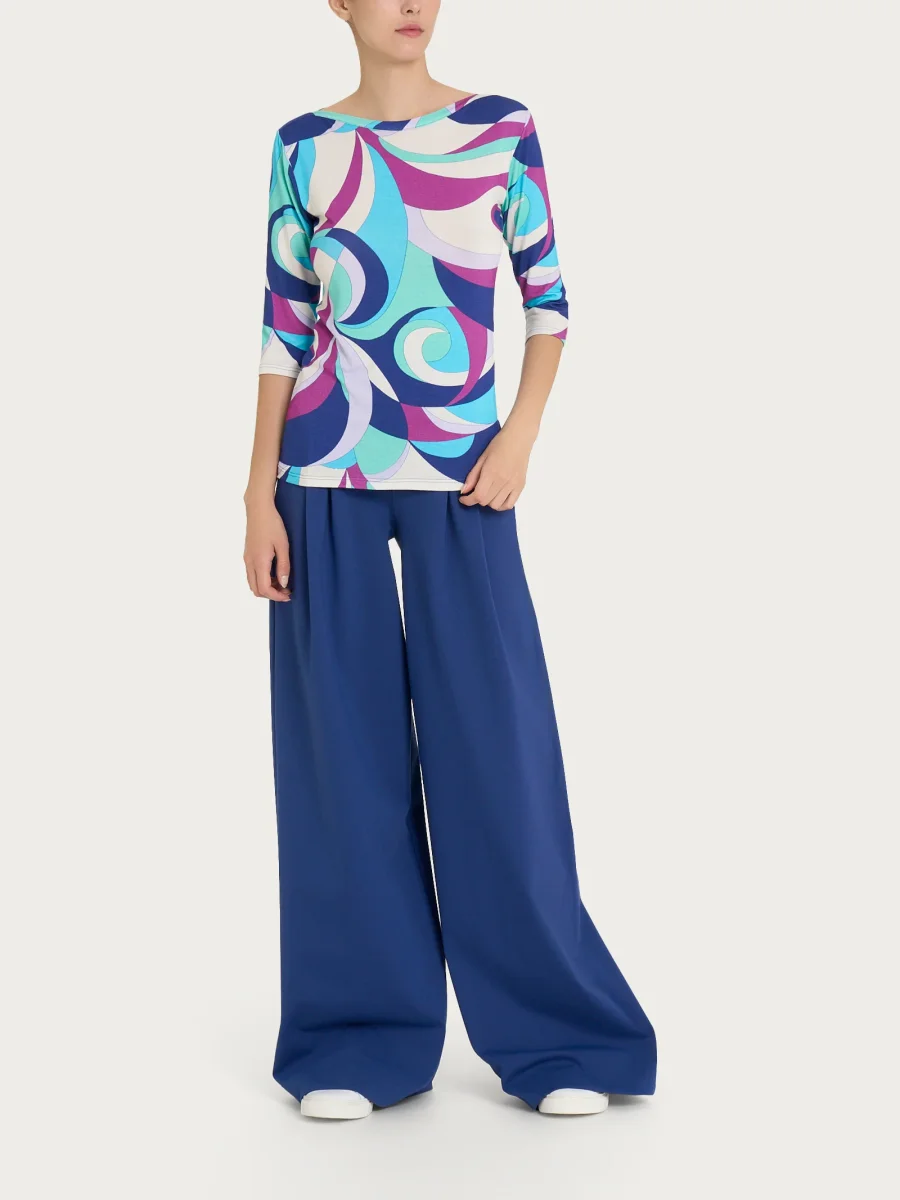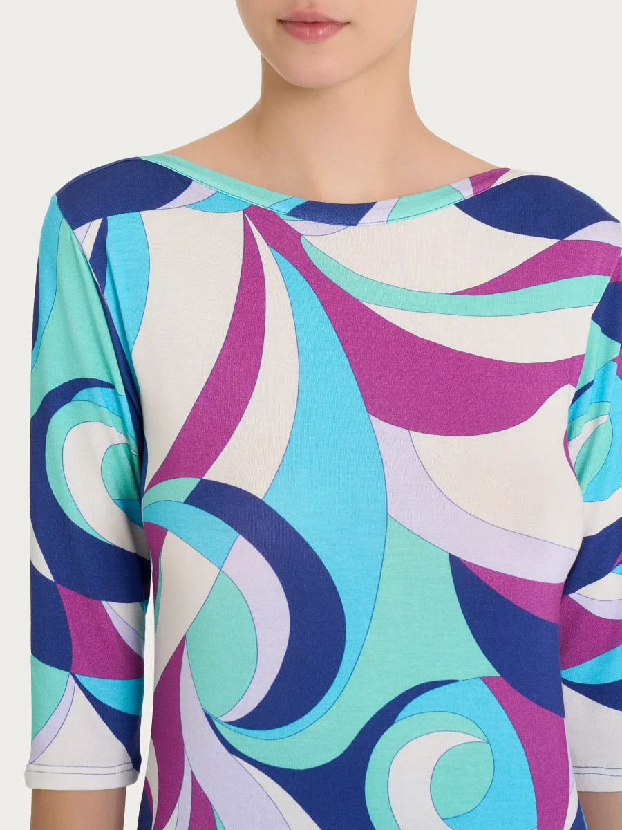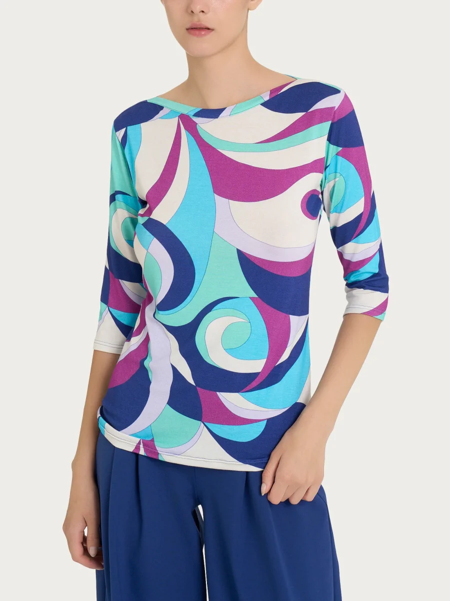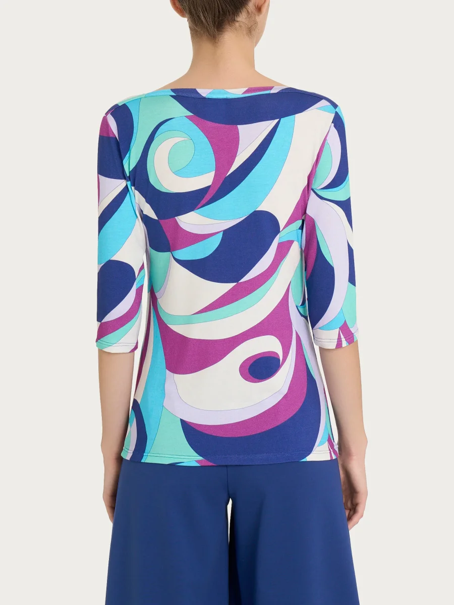 Maglietta girocollo con waves pattern in Viscosa Summer – Fant. Pool Blue
