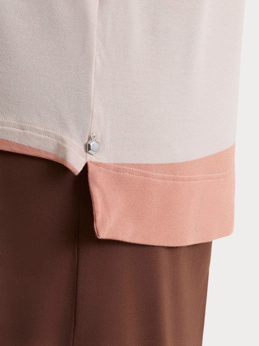 Protagoniste assolute sono le macro righe orizzontali, grafiche e d’impatto: un motivo essenziale ma forte, che dà ritmo al capo e rende immediato anche l’abbinamento più semplice.