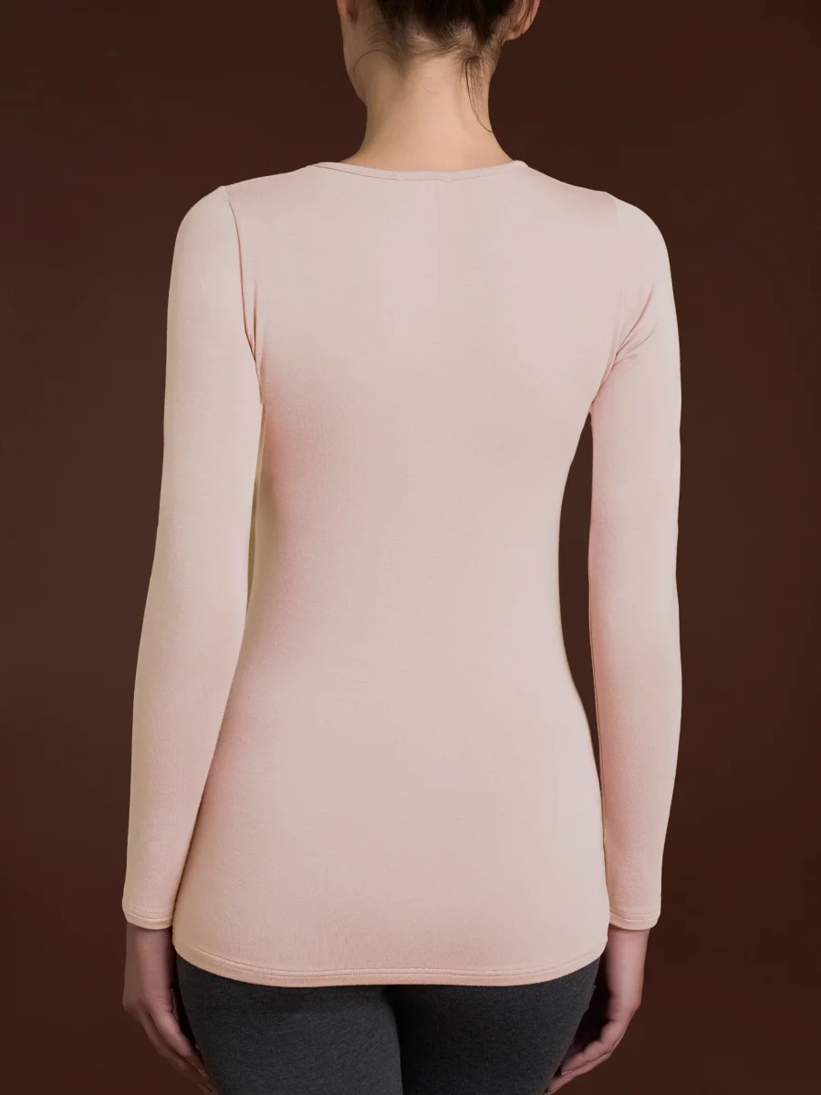 Maglia girocollo a manica lunga da donna in ecoviscosa, una delicata viscosa elasticizzata calda e morbida.