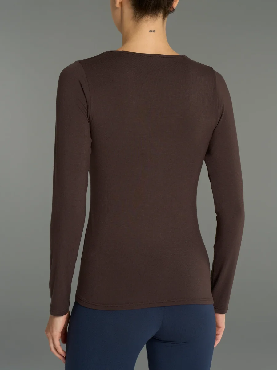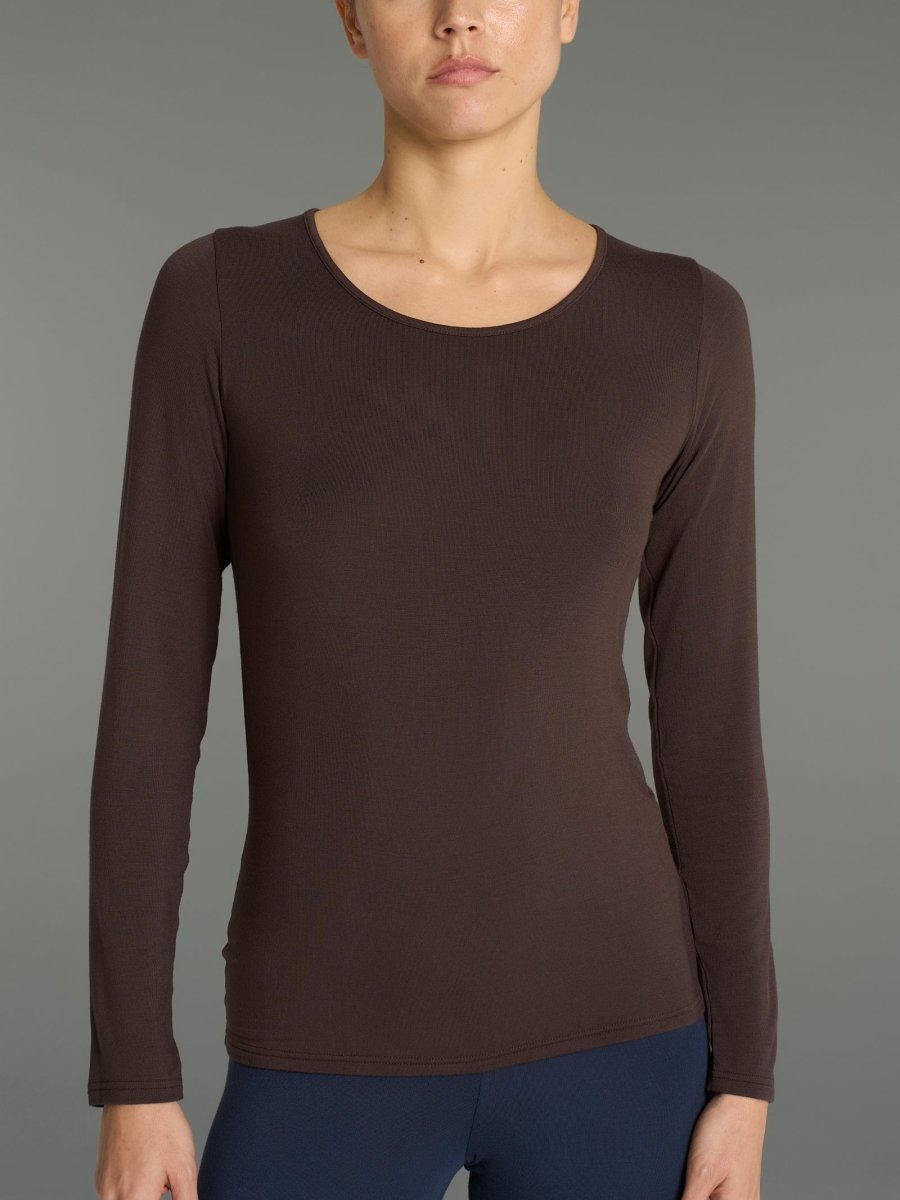 Maglia girocollo a manica lunga da donna in ecoviscosa, una delicata viscosa elasticizzata calda e morbida.