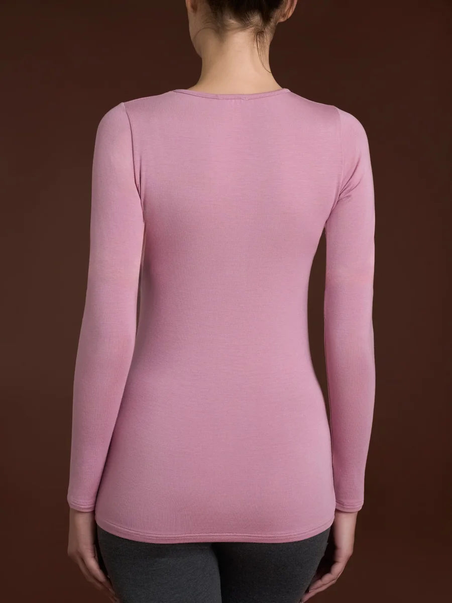 Maglia girocollo a manica lunga da donna in ecoviscosa, una delicata viscosa elasticizzata calda e morbida.