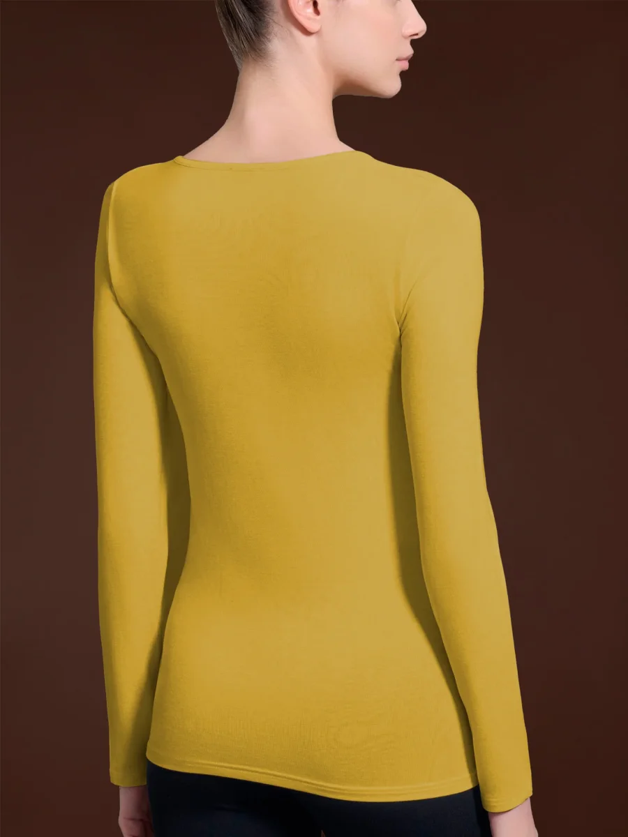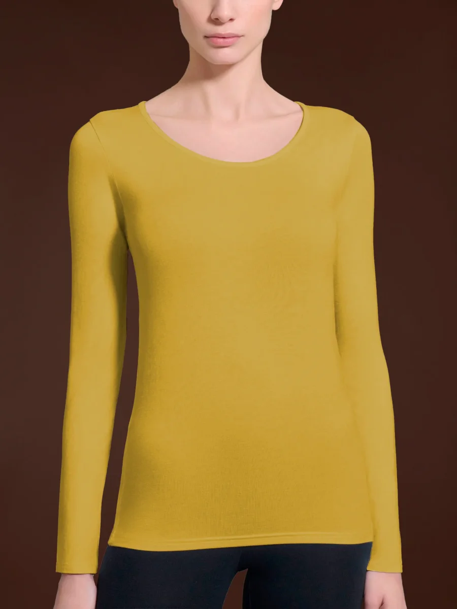 Maglia girocollo a manica lunga da donna in ecoviscosa, una delicata viscosa elasticizzata calda e morbida.