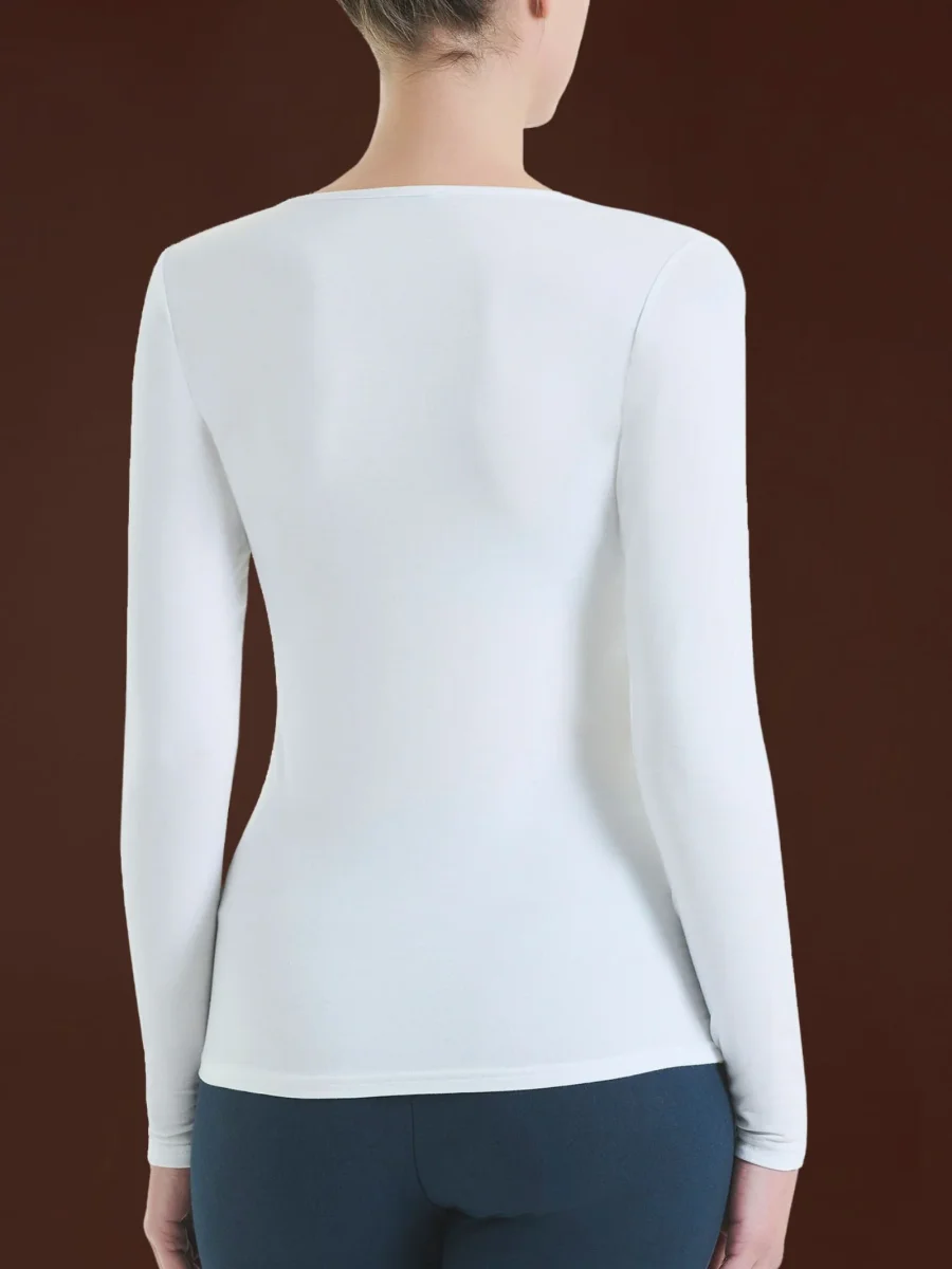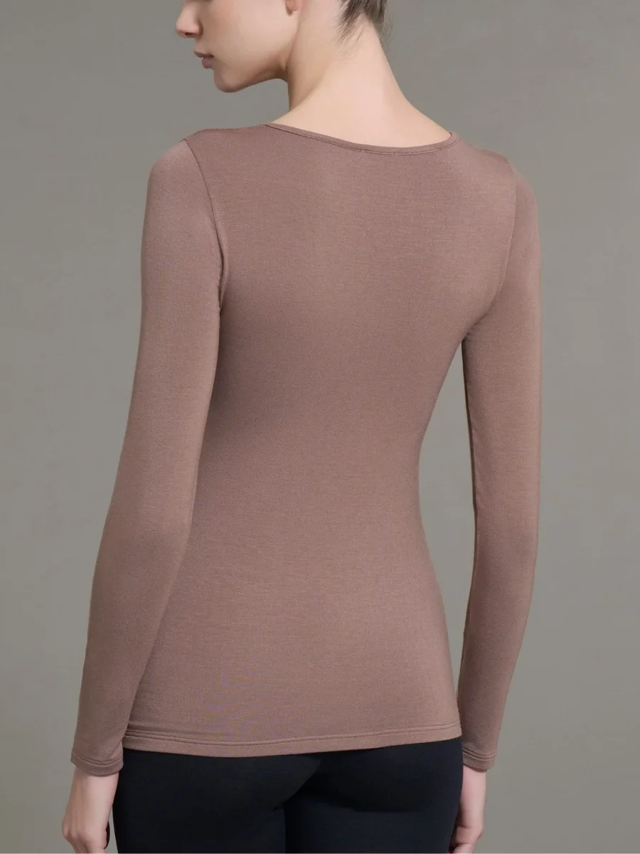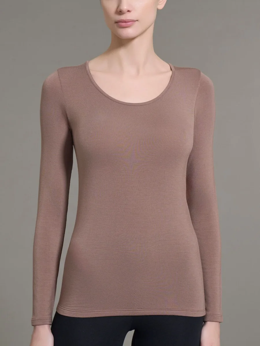 Maglia girocollo a manica lunga da donna in ecoviscosa, una delicata viscosa elasticizzata calda e morbida.