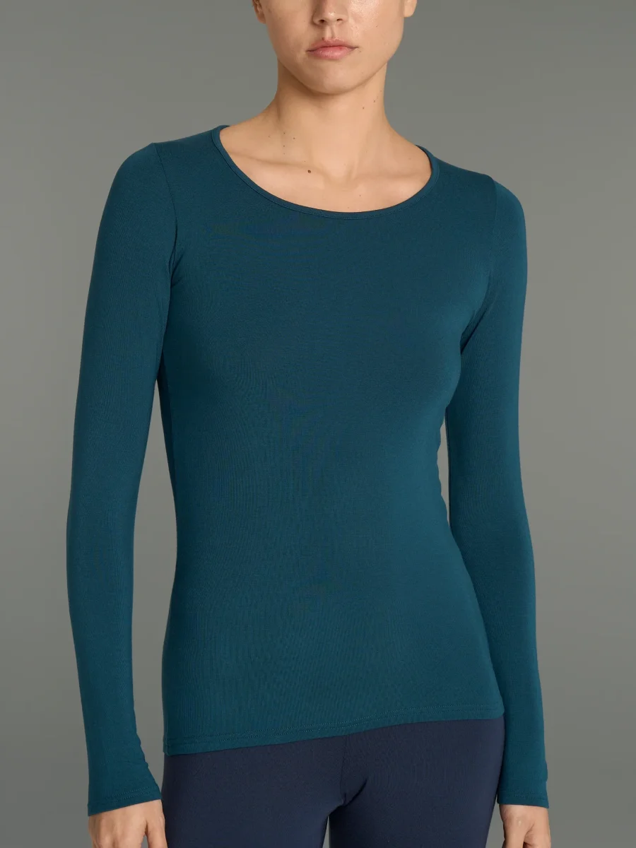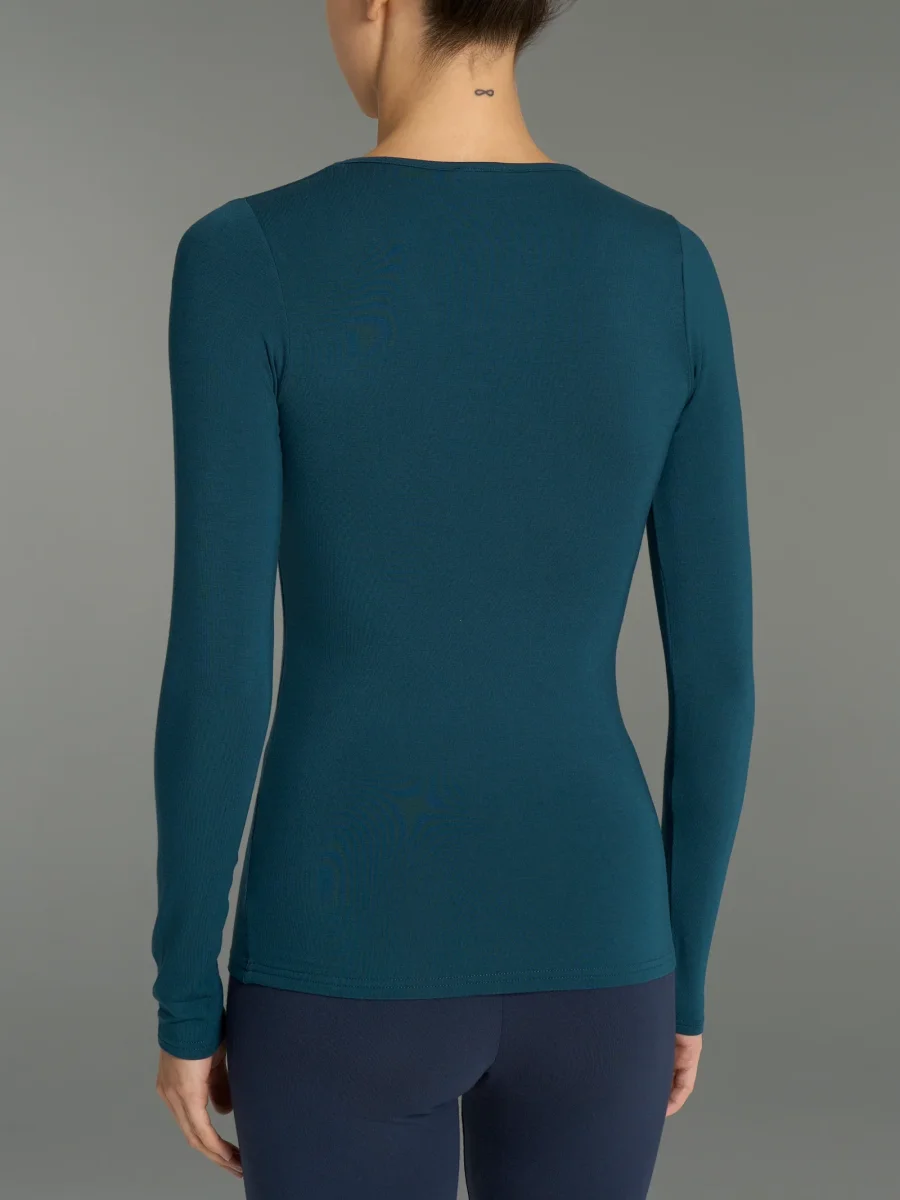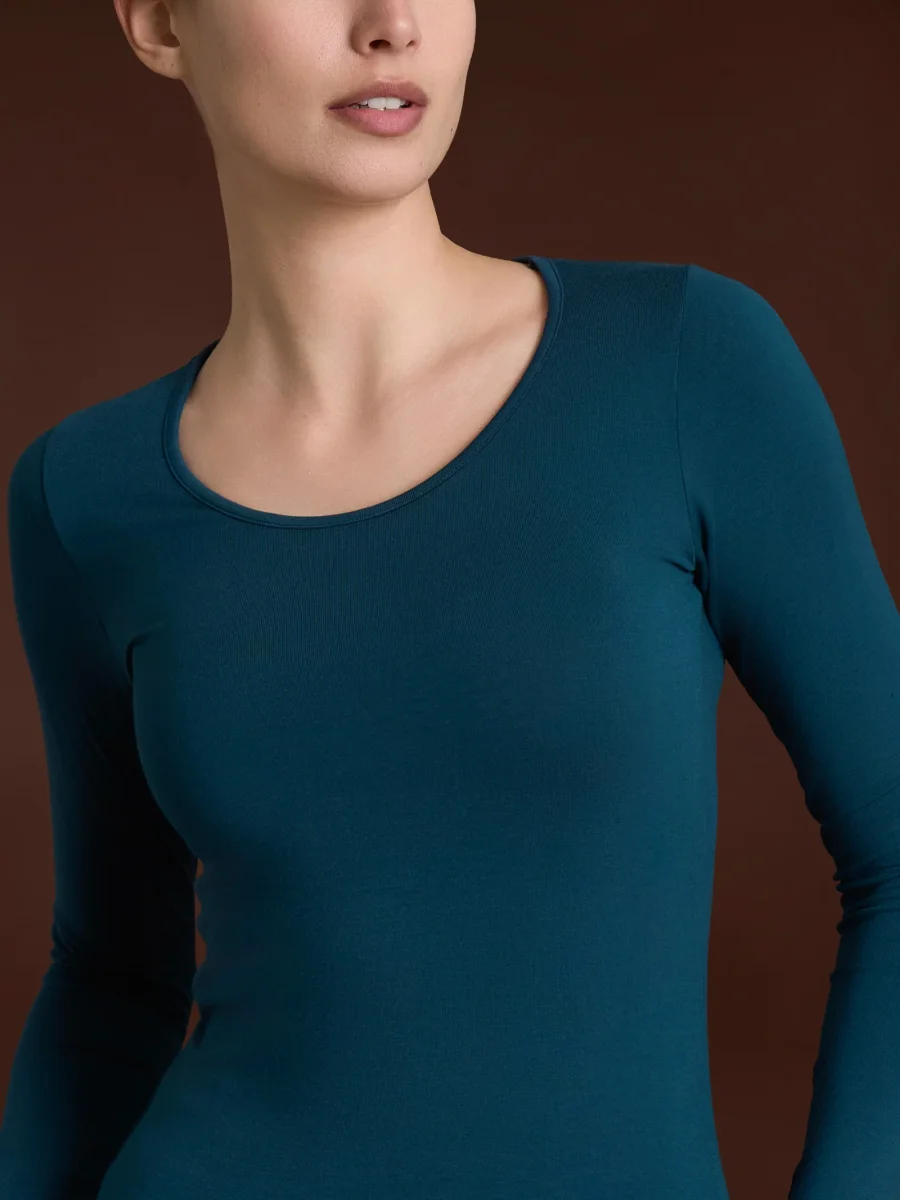 Maglia girocollo a manica lunga da donna in ecoviscosa, una delicata viscosa elasticizzata calda e morbida.