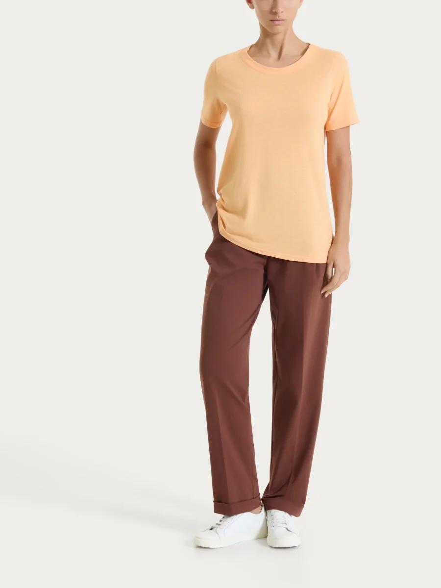 T-shirt girocollo da donna con la manica corta.